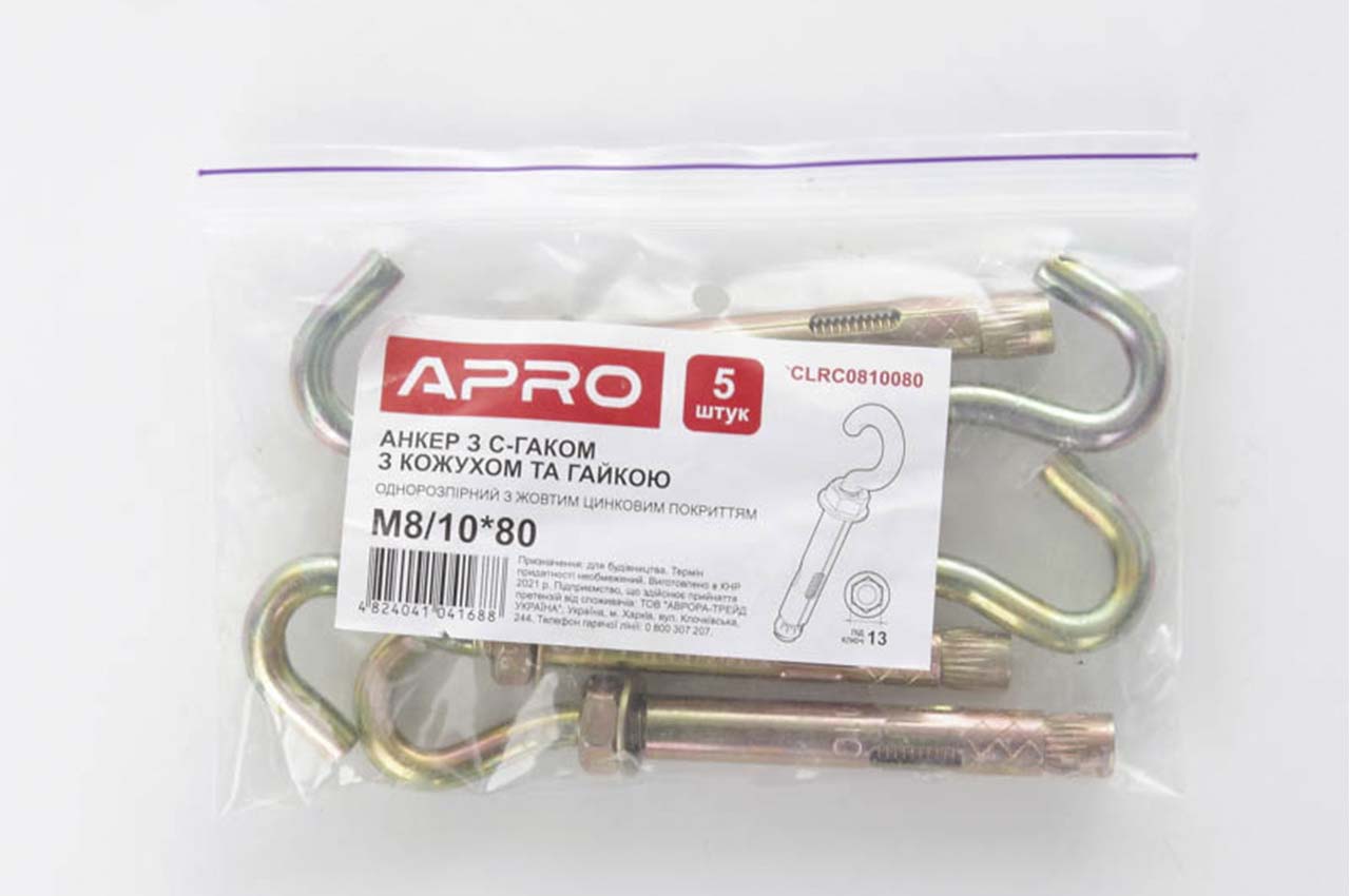 Анкер однораспорный с гайкой C-крюк Apro - 10 х 80мм x М8 (5шт)