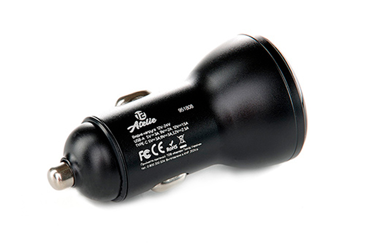 Автомобильное зарядное устройство 12 Atelie - USB/Tipe-C x 5V x 3A черный