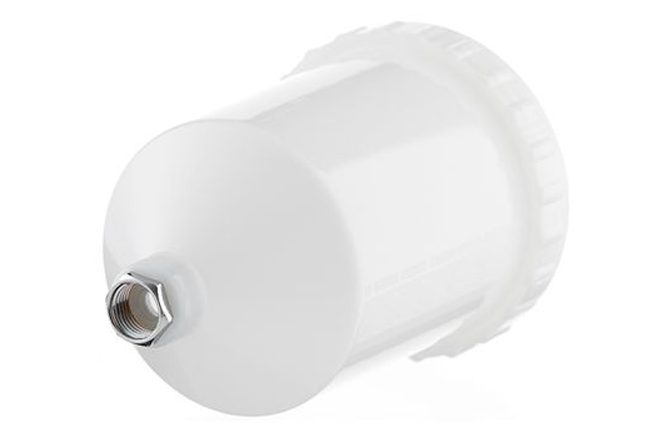 Бачок пластиковый предназначен для большинства краскопультов системы HVLP и LVLP. Корпус бачка изготовлен из пластика, через его стенки хорошо просматривается уровень краски, что очень удобно в работе. Позволяет контролировать расход ЛКМ и вовремя доливать. Бачок оснащен посадочным местом с внутренней резьбой М16х1.5; и прекрасно подойдет как замена или дополнительный бачок к покрасочному пистолету. Объем бачка: 600 мл; Расположение бачка: верхнее; Материал бачка: пластик