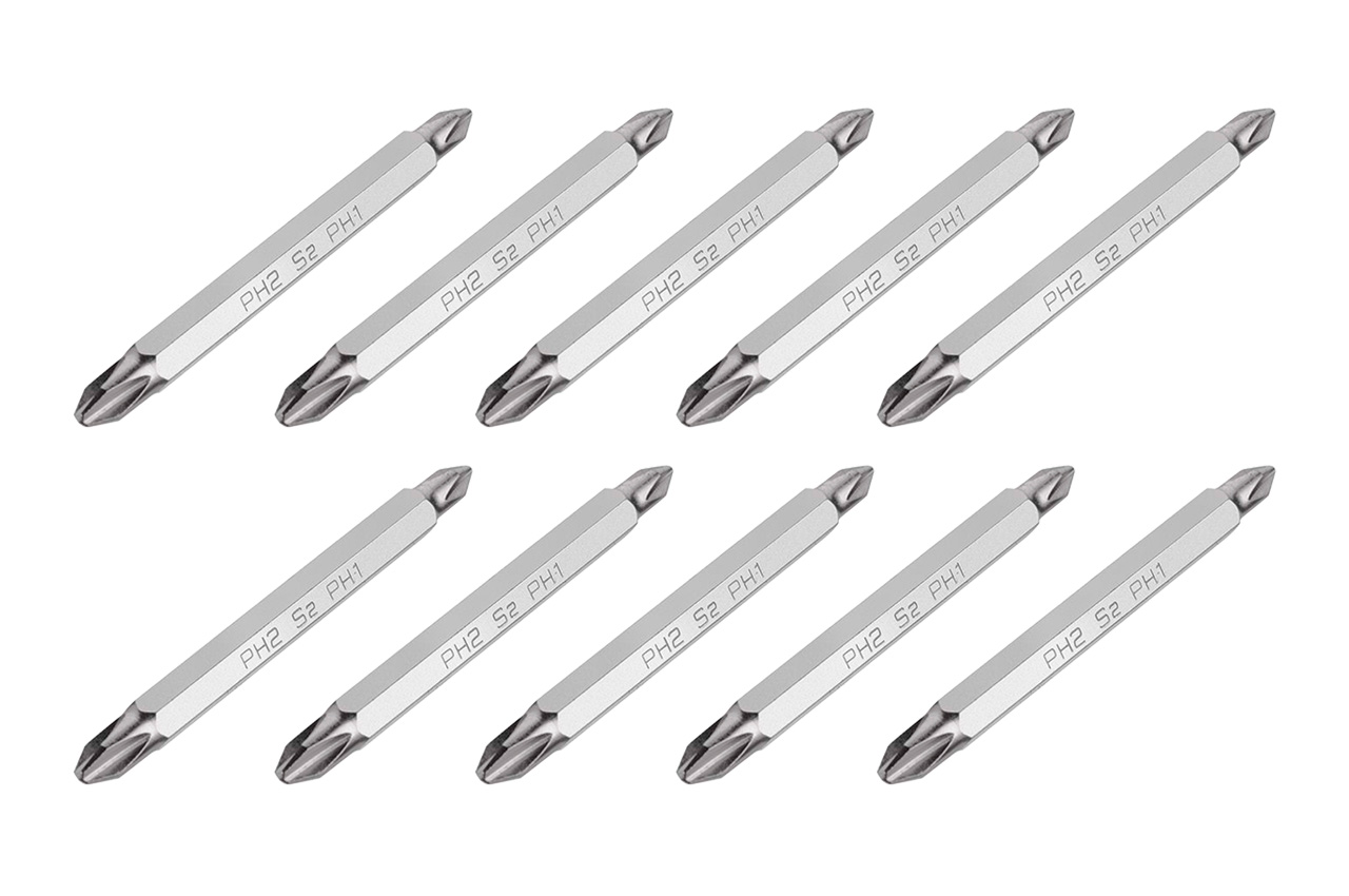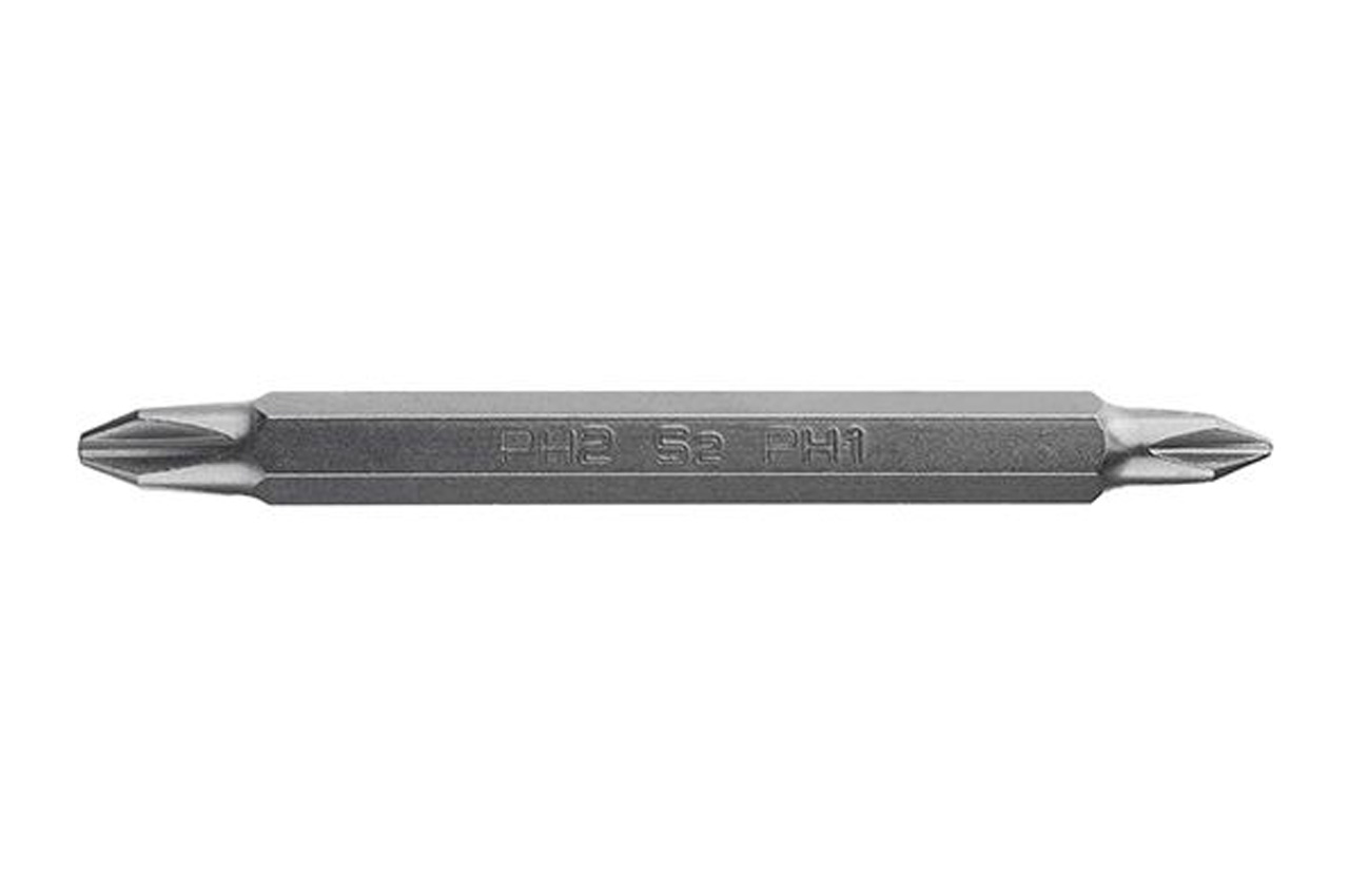 Двусторонняя насадка имеет размер шестигранника 1/4" длиной 75 мм. Размерность шлицев составляют шлиц PH1 и шлиц PH2. Т.е. в процессе работы, если вам попадаются головки саморезов PH с отличающимися размерами, можно просто переставить биту другой стороной. Количество: шт; Шестигранник: 1/4 дюйм