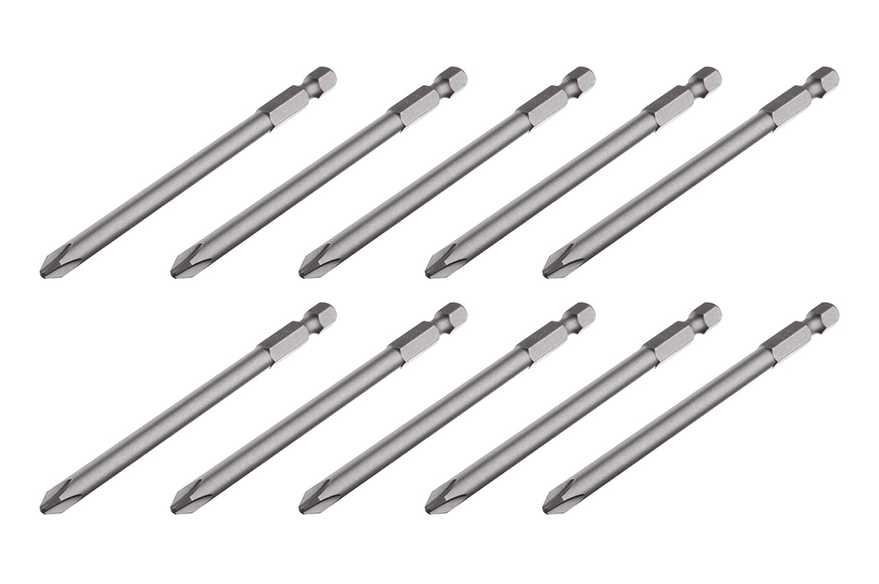 PH2 – самый распространенный тип насадок. Используют в качестве сменных насадок при работе со шлицами винтов, шурупов и саморезов. Благодаря универсальному шестигранному хвостовику в 6 мм подходят как к ручным отверткам, так и к дрелям, шуруповертам. Удлиненная форма позволит закручивать крепежи даже в труднодоступных местах. Эти отверточные насадки прослужат вам дольше обычных бит, т. к. изготовлены из прочной, твердой стали S2. Грани не стачиваются в работе, а сама бита, не подвержена хрупкому разрушению. Рабочий шлиц каждой биты намагничен. Количество в упаковке: 10 шт