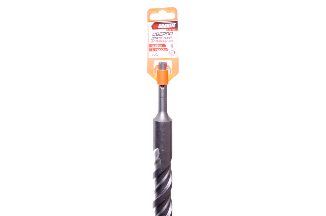 Бур по бетону "Granite" с твердосплавной победитовой напайкой. Используется для образования сквозного или глухого отверстия в сплошном материале и/или для увеличения диаметра имеющегося отверстия. Применяется для отделки кирпичной кладки, железобетона, гранита и жесткого бетона. Хвостовик SDS+; Диаметр сверления – 28 мм; Длина бурая – 1000 мм.