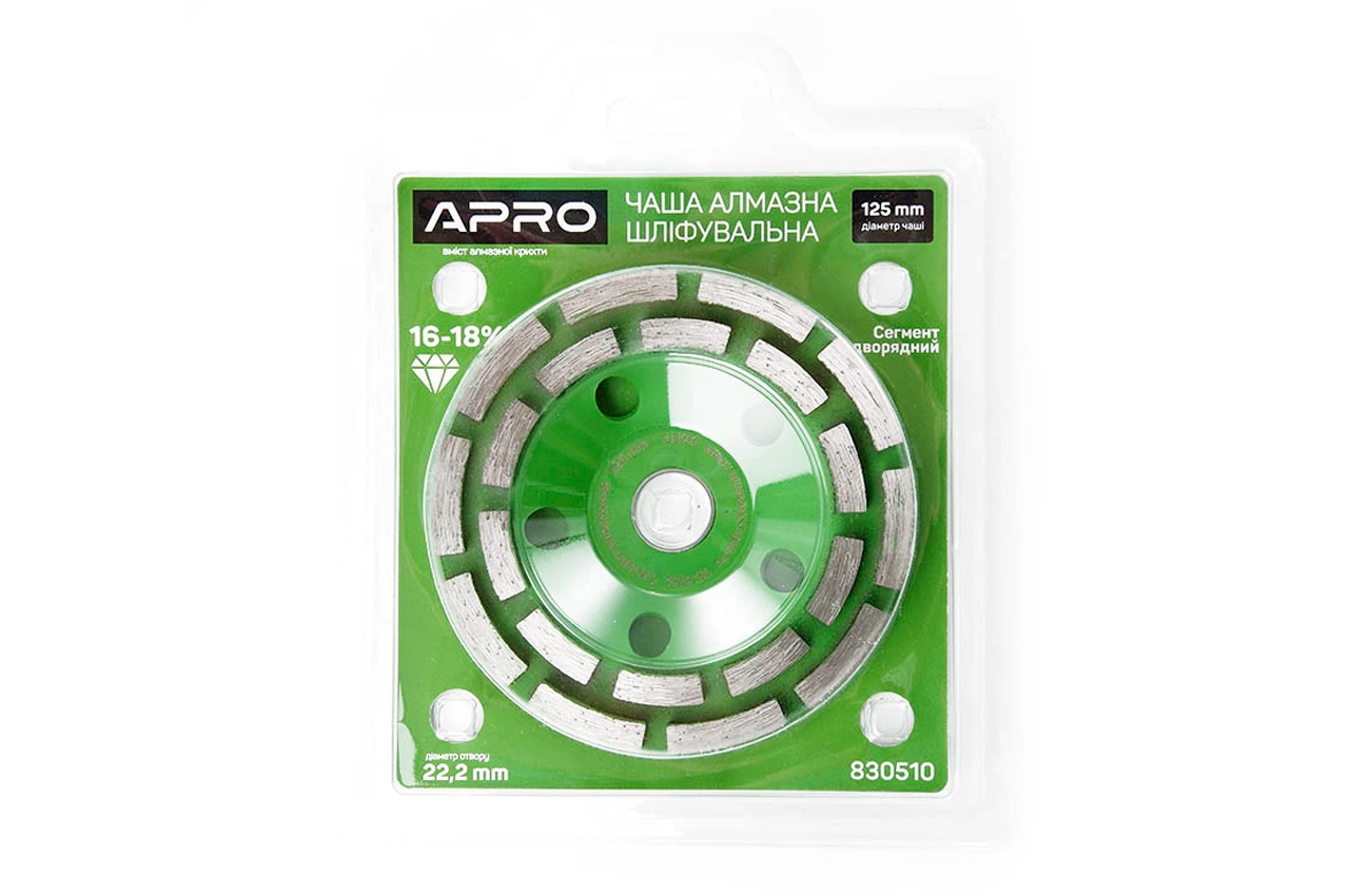 Чашка алмазная шлифовальная Apro - 125 мм 16-18% сегмент двухрядный