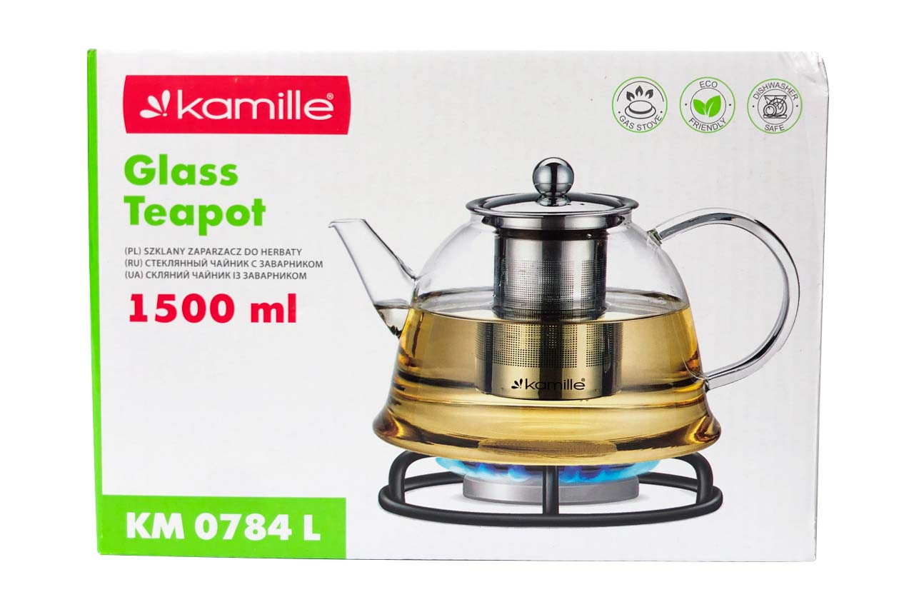 Чайник стеклянный огнеупорный Kamille - 1500мл с заварником