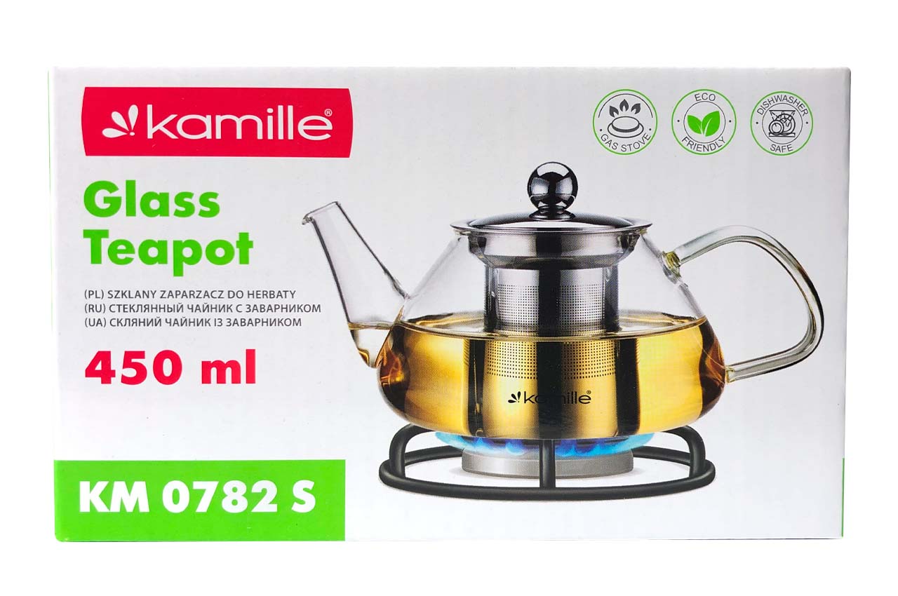 Чайник стеклянный огнеупорный Kamille - 450мл с заварником