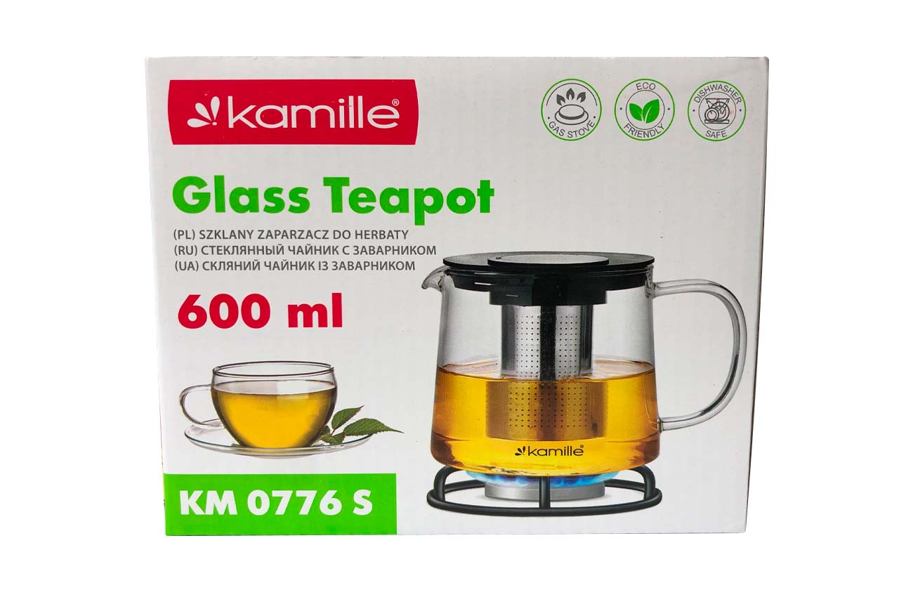 Чайник стеклянный огнеупорный Kamille - 600мл с заварником