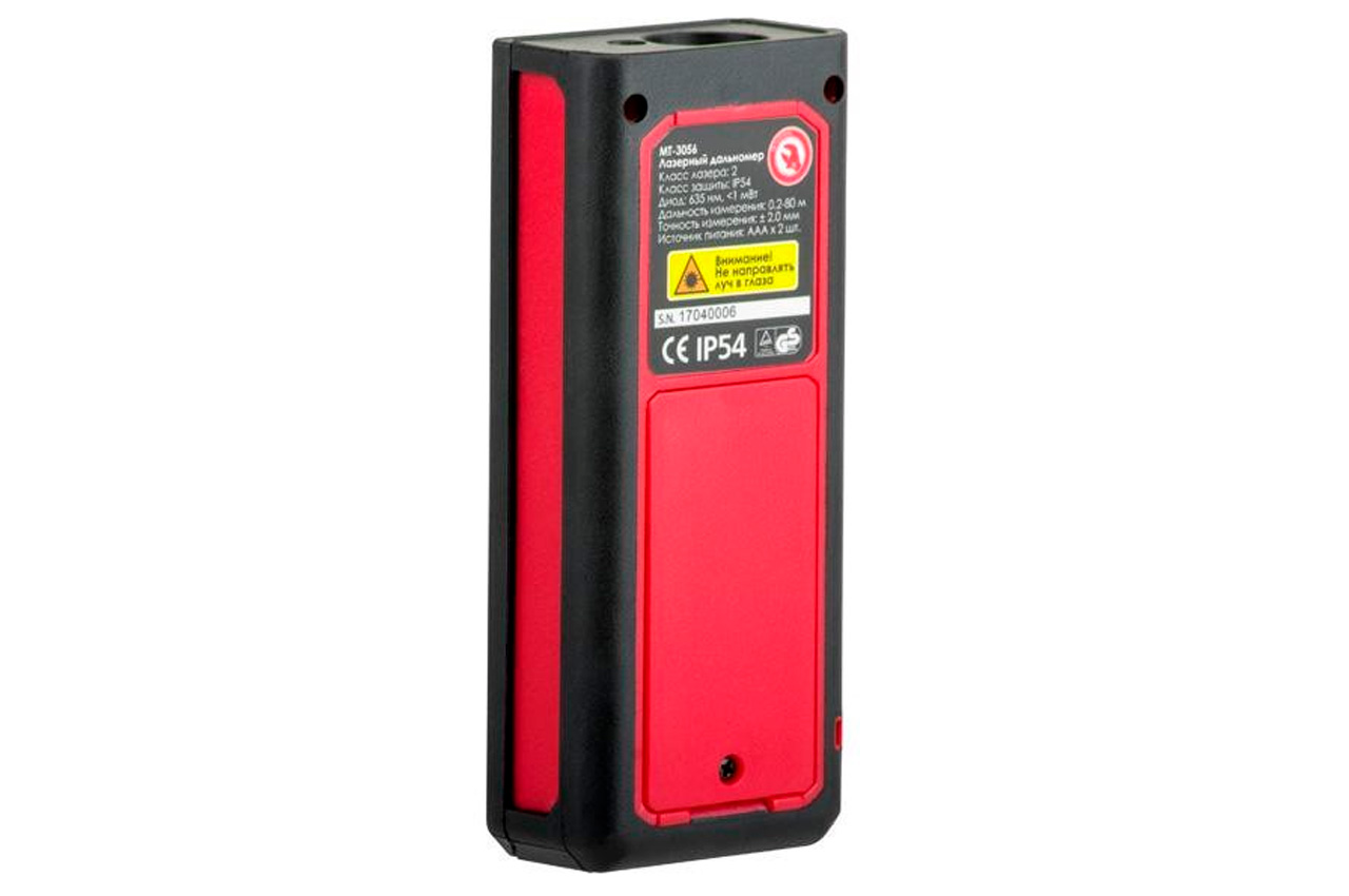 Лазерный дальномер позволяет без труда измерить расстояние, высоту, а также рассчитать площадь объекта и объем. Класс защиты от влаги и пыли IP54 позволяет работать дальномером как в помещении так и на открытом воздухе. Подсветка дисплея. Звуковой сигнал. Встроенный пузырьковый уровень. Габаритные размеры: 50 х 29 х 120 мм; Температура хранения: от -10 до +60 °С; Длина волны лазера: 635 Нм; Единицы измерения: М / in / ft / ft+in; Точность измерения: +-2,0 мм; Память: 20 значений; Режимы работы: Одиночное измерение; Непрерывное измерение; Сложение вычитание; Метод пифагора; Измерение площади; Измерение объема;; Класс лазера: 2; Мощность лазера: до 1 мВт; Рабочая температура: от 0 до +40 °С; Диапазон измерения: от 0,02 до 60 м; Другое: Подсветка дисплея; Звуковой сигнал; Встроенный пузырьковый уровень.
