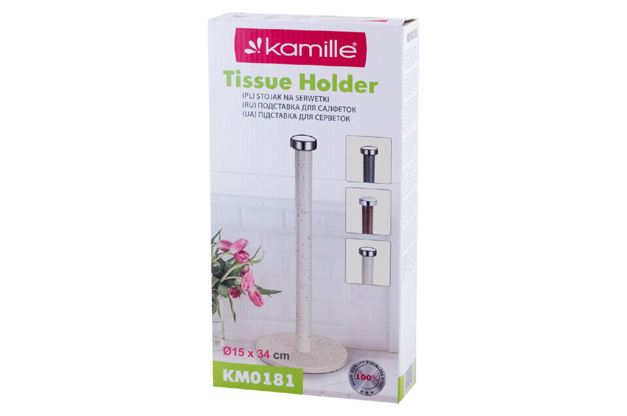 Держатель бумажных полотенец Kamille – идеально подходит для размещения на нем бумажных полотенец, которые должны быть на каждой кухне. Кухонные полотенца на таком держателе будут всегда рядом и всегда в аккуратном виде.