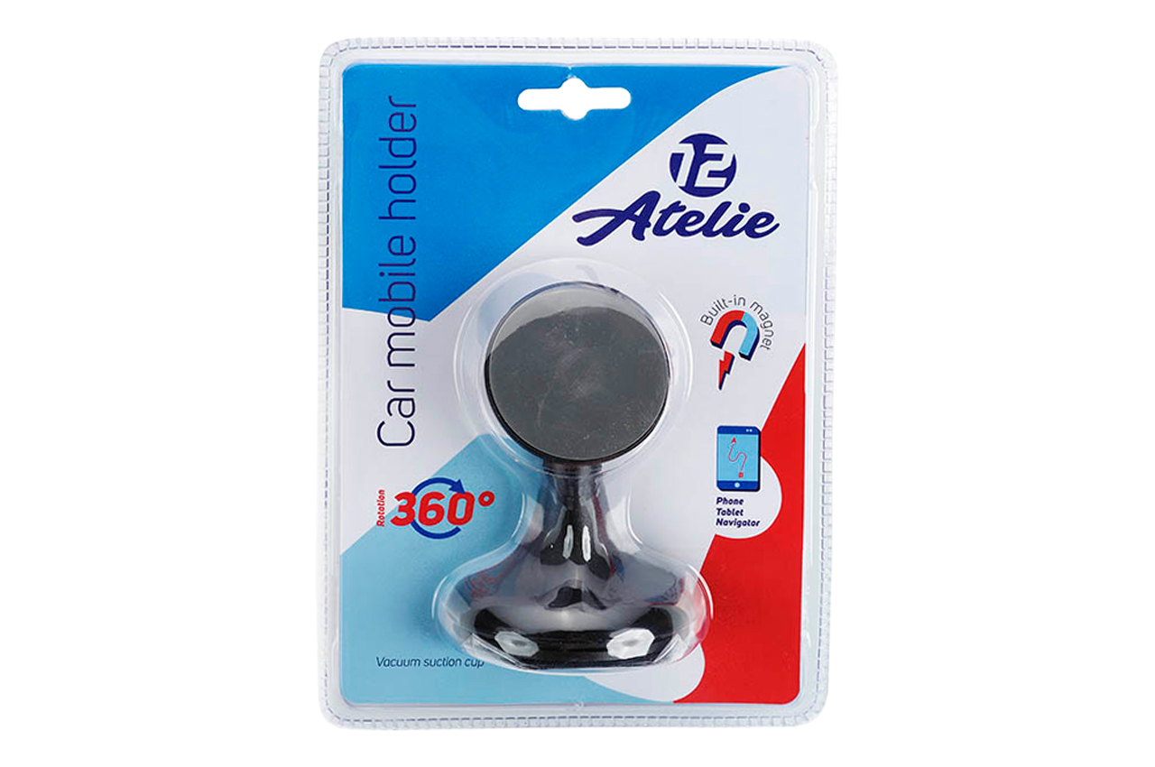 Держатель для телефона 12 Atelie – универсальный магнитный держатель, который подойдет для абсолютно любого мобильного телефона. Держатель крепится на присоску, надежно фиксируется. Благодаря мощному магниту, держатель хранит смартфон в неподвижном состоянии даже на неровной дороге.