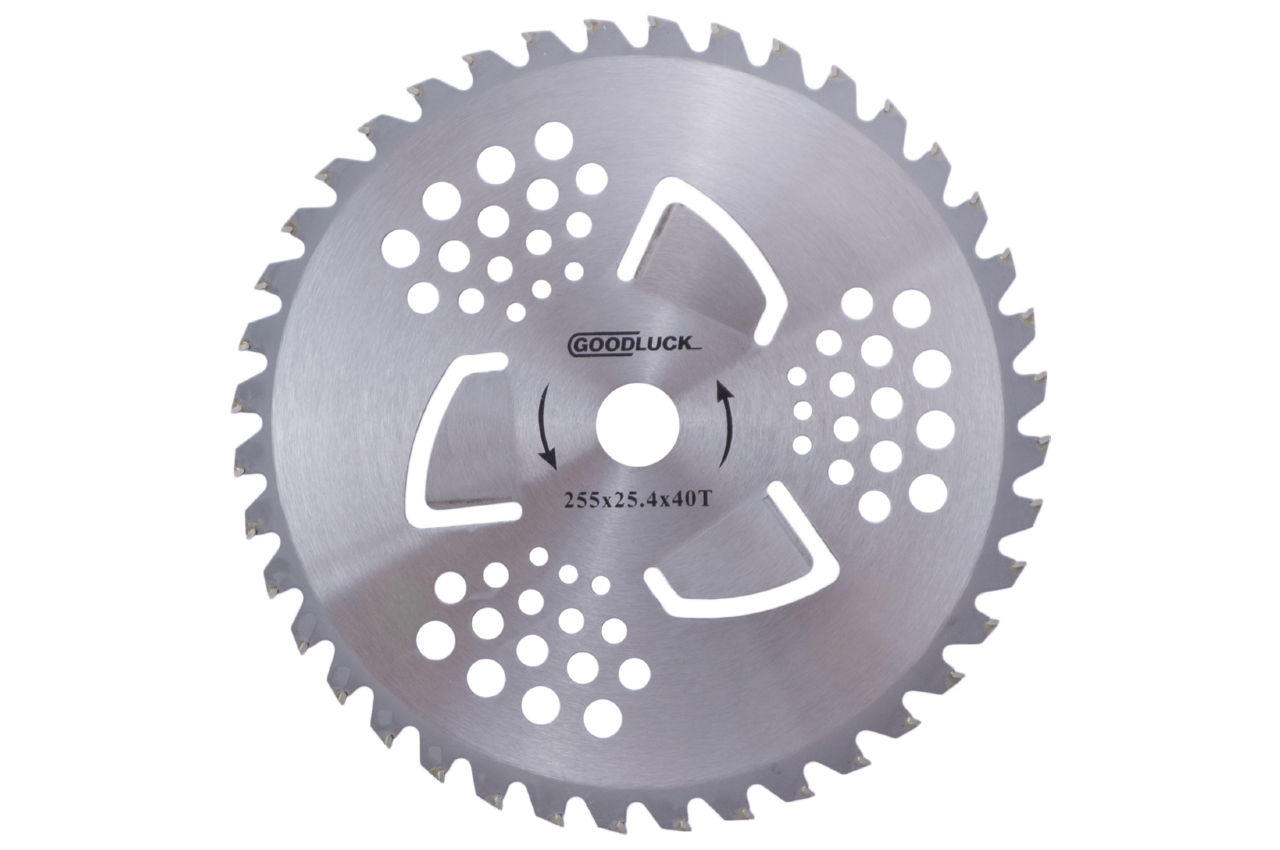 Диск для триммера Рамболд представляет собой 40-зубчатый нож с твердосплавными напайками имеющий диаметр 255 мм - предназначен для кошения травы, камыша, бурьяна с толстым диаметром ствола, поросли возле деревьев, кустарников и т. д. как на небольших территориях (дачи, усадьбы, часные дома) так и на больших площадях.
