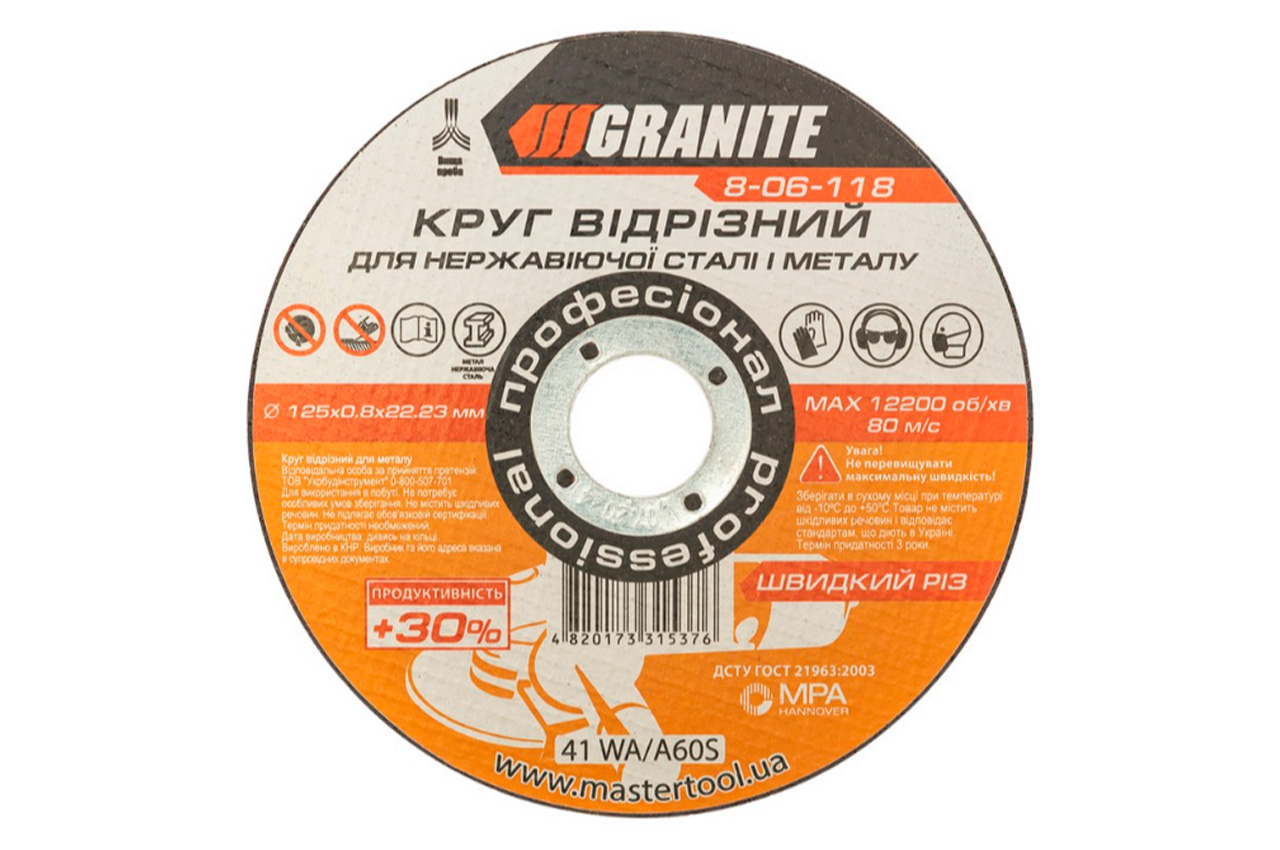 Диск отрезной по металлу Granite - 125 х 0,8 х 22,2 мм + 30%