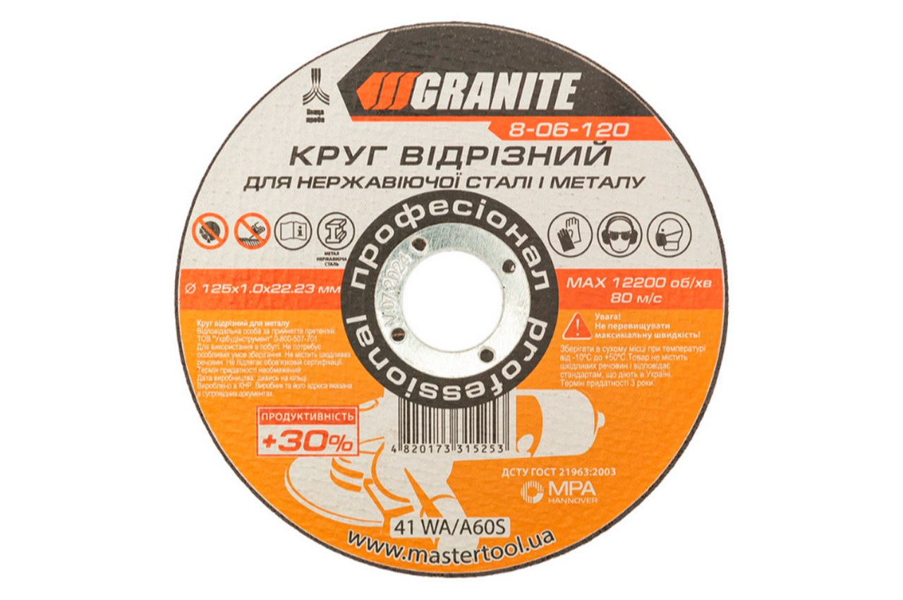 Диск отрезной по металлу Granite - 125 х 1,0 х 22,2 мм + 30%