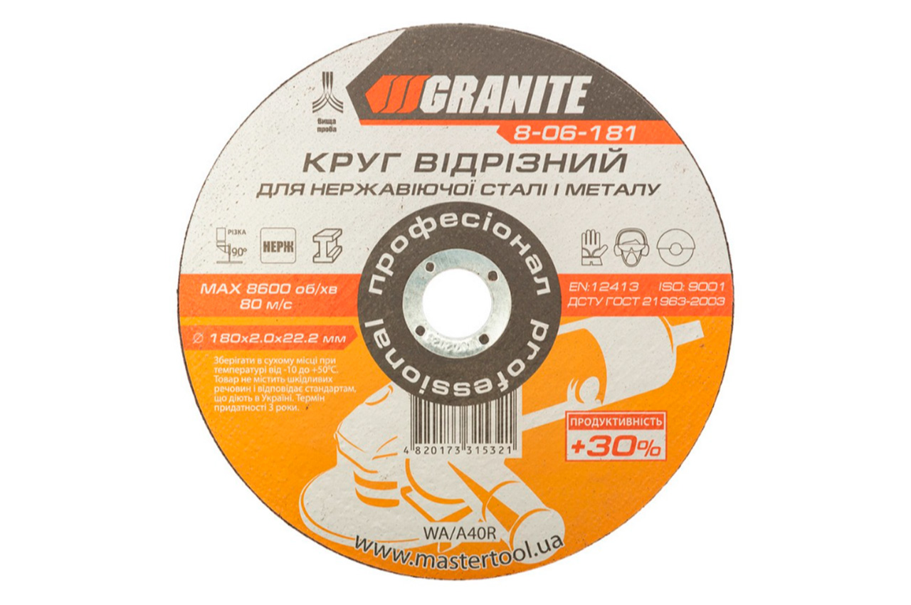 Диск отрезной по металлу Granite - 180 х 2,0 х 22,2 мм + 30%