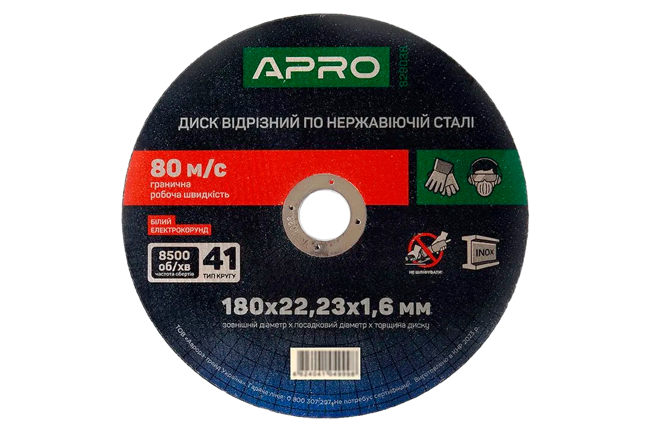 Диск отрезной по нержавеющей стали Apro - 180 х 1,6 х 22,23мм