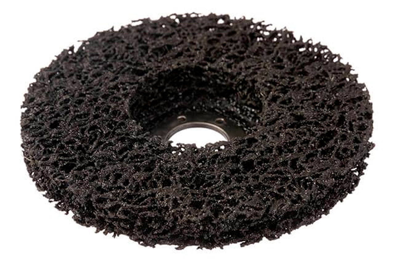 Пористый диск из нетканого абразивного волокна предназначен для быстрой и эффективной зачистки поверхностей от старых лакокрасочных покрытий, ржавчины, герметиков и любых неровностей. Также зачищает сварные швы и нержавеющие стали. Преимущества: быстрая и эффективная зачистка любых поверхностей безопасная работа деликатная зачистка большой ресурс работы можно обрабатывать скругленные поверхности, трубы не портит геометрию детали и не стачивает лишнего Больше возможностей Это отличая альтернатива щетками из проволоки и лепестковым дискам, благодаря своей пористой структуре, круг не забивается продуктами шлифования и не нагревает поверхность, в итоге краска не "плывет" и отлично счищается. Совместимость Диск устанавливают на УШМ, максимально допустимые обороты - 7600 об/мин, со скоростью 55 м/с. Лучше всего подойдет инструмент с регулировкой оборотов, старайтесь не создавать избыточное давление на диск, ведь абразивное зерно специально создано для работы от незначительного усилия. В противном случае сильный нажим ускорит износ диска. Универсальность Подходит для работы с любыми поверхностями: металл, бетон, дерево, камень, кирпич, чугун, керамогранит, пластик и пр. Круг с волокном черного цвета средней жесткости.
