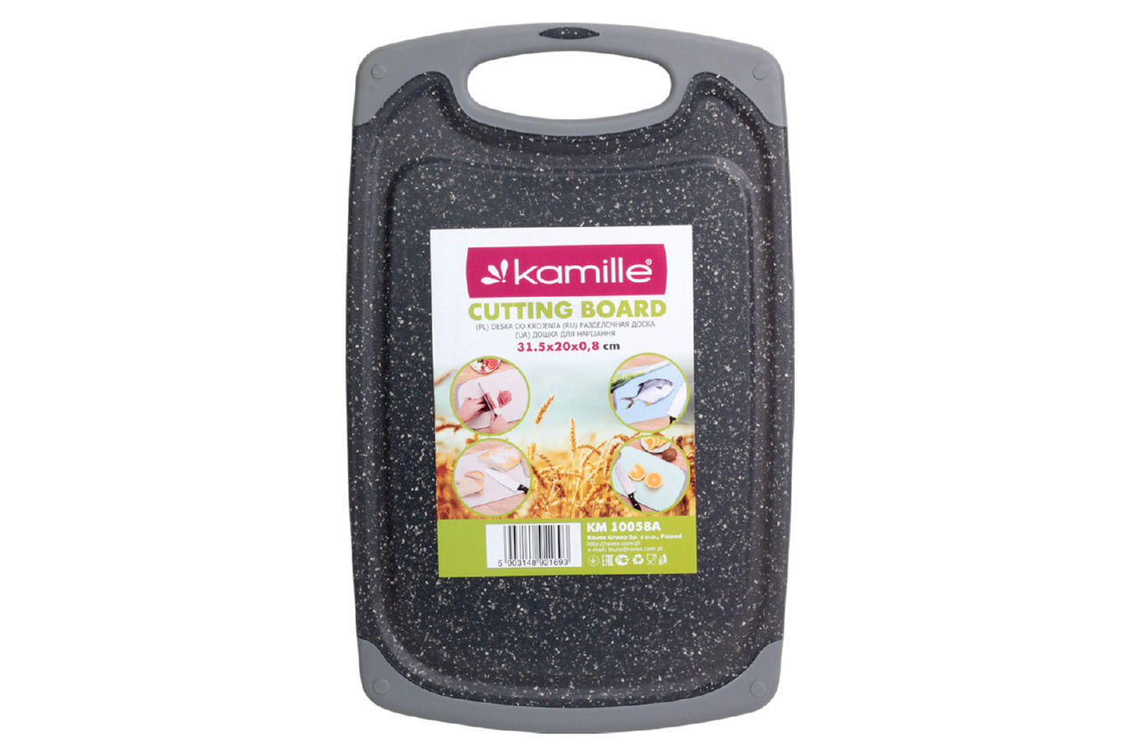 Доска разделочная Kamille – это надежный и практичный инструмент для кухни, который станет незаменимым помощником во время приготовления пищи. Размеры доски – 315 мм в длину, 200 мм в ширину и 8 мм в толщину, что позволяет комфортно работать с большими кусками мяса, овощами или фруктами. Легко чистится и обладает высокой стойкостью к повреждениям, обеспечивая длительный срок службы.