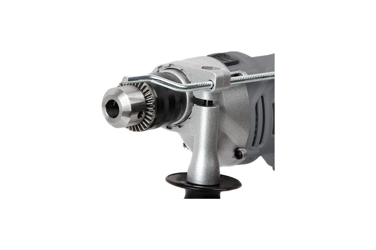 Ударная дрель - один из самых популярных инструментов дома и на строительной площадке, за счет совмещения функций классической дрели и бытового перфоратора. Ударная дрель DT-0121 предназначена для сверления отверстий в бетоне, кирпиче, металле, пластике и древесине. Небольшой вес и размер позволяют хранить и перевозить дрель без особых проблем. Особенности Большое количество оборотов (до 3000 об/мин) и высокая частота ударов помогают делать ровные и точные отверстия, даже в плотных материалах. Металлический корпус редуктора эффективно отводит тепло и увеличивает продолжительность работы и срок службы инструмента. Возможности дрели расширены: регулятором и ограничителем оборотов, кнопкой реверс, двумя режимами сверления (с ударом и без него), фиксатором пусковой кнопки, дополнительной рукояткой и металлическим ограничителем глубины сверления. Удобно сидит в руках и не перегружает запястья, благодаря качественной сборке, прорезиненной рукоятке и отличному распределению веса. Дрель, мощностью 950 Вт, легко справляется с поставленными задачами. Установлен ключевой патрон (ключ в комплекте), он надежно фиксирует сверла с диаметром хвостовика от 1.5 до 13 мм и не даёт им проворачиваться даже в ударном режиме. Прочный металлический корпус редуктора увеличивает рабочий ресурс инструмента т.к. эффективно отводит тепло, а также выдерживает большую механическую нагрузку. Функции, расширяющие возможности дрели Сверлит гладко и не перегружается на старте, благодаря двум отзывчивым регуляторам оборотов с широким диапазоном: механическим (колесо-регулятор на кнопке пуск) и электронным (обороты зависят от силы нажатия на кнопку пуск). Удобный переключатель, на верхней части дрели, позволяет выбрать между ударным и безударным режимом. Кнопка реверса на корпусе, мягко переключает дрель в противоположное вращение, без потери мощности. Наличие этой функции помогает доставать сверла из глубоких отверстий, а также выкручивать шурупы и саморезы. Фиксатор пусковой кнопки (фиксирует только полностью нажатую кнопку) позволяет зафиксировать инструмент в непрерывном работающем состоянии. Выставив ограничитель глубины на нужное значение, Вы не просверлите материал насквозь и сможете быстро сделать несколько одинаковых отверстий. Рукоятка и шнур Качественная сборка и прорезиненная накладка на рукоятке увеличивает комфорт работы и уменьшает вибрацию. Дополнительная рукоятка позволяет работать двумя руками, а также фиксирует металлический ограничитель. Мощный, надежный, двухметровый провод не дубеет при низкой температуре и не переламывается. Возьмите ударную дрель в руки, и Вы за несколько секунд просверлите отверстие в бетоне, кирпиче или нержавеющей стали. Ключевой патрон: 1.5-13 мм; Число оборотов холостого хода: 0-2800 об/мин; Частота сети: 50 Гц; Напряжение питания: 230 В; Потребляемая мощность: 950 Вт; Максимальный диаметр сверления: дерево: 40ммсталь: 14ммкирпич/бетон: 16мм; Резьба шпинделя: 1/2" х 20 UNF