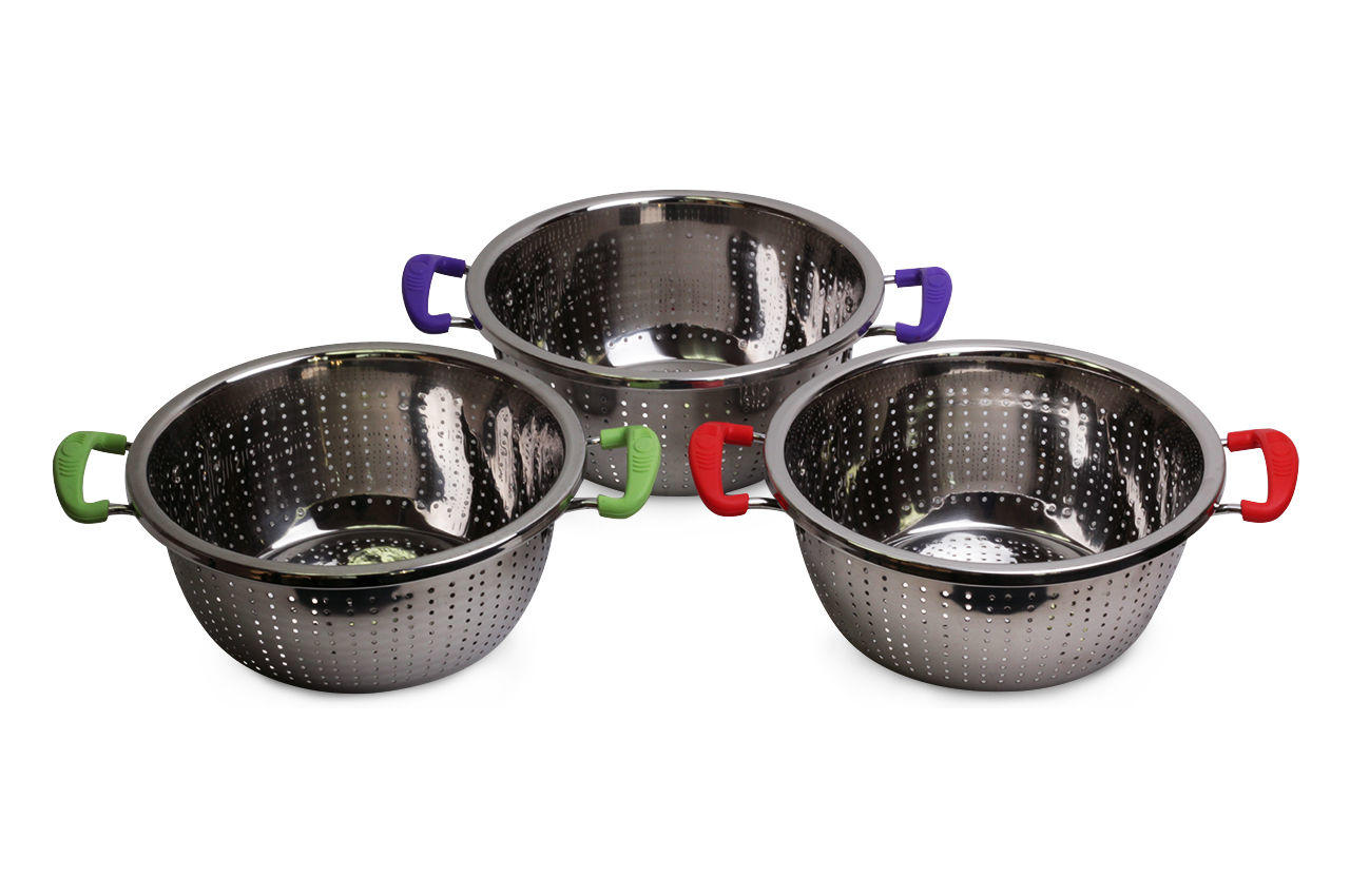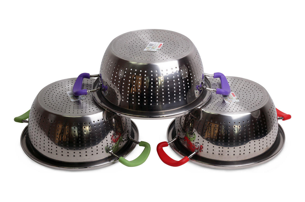 Дуршлаг нержавеющий Kamille – необходимая вещь на кухне для приготовления различных блюд, для отделения жидкости от твердых веществ, мытья и промывки ягод, грибов, мелких фруктов и овощей, а также отцеживание сырной сыворотки.