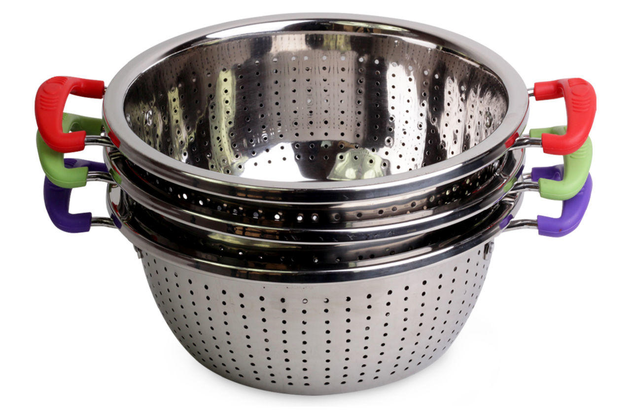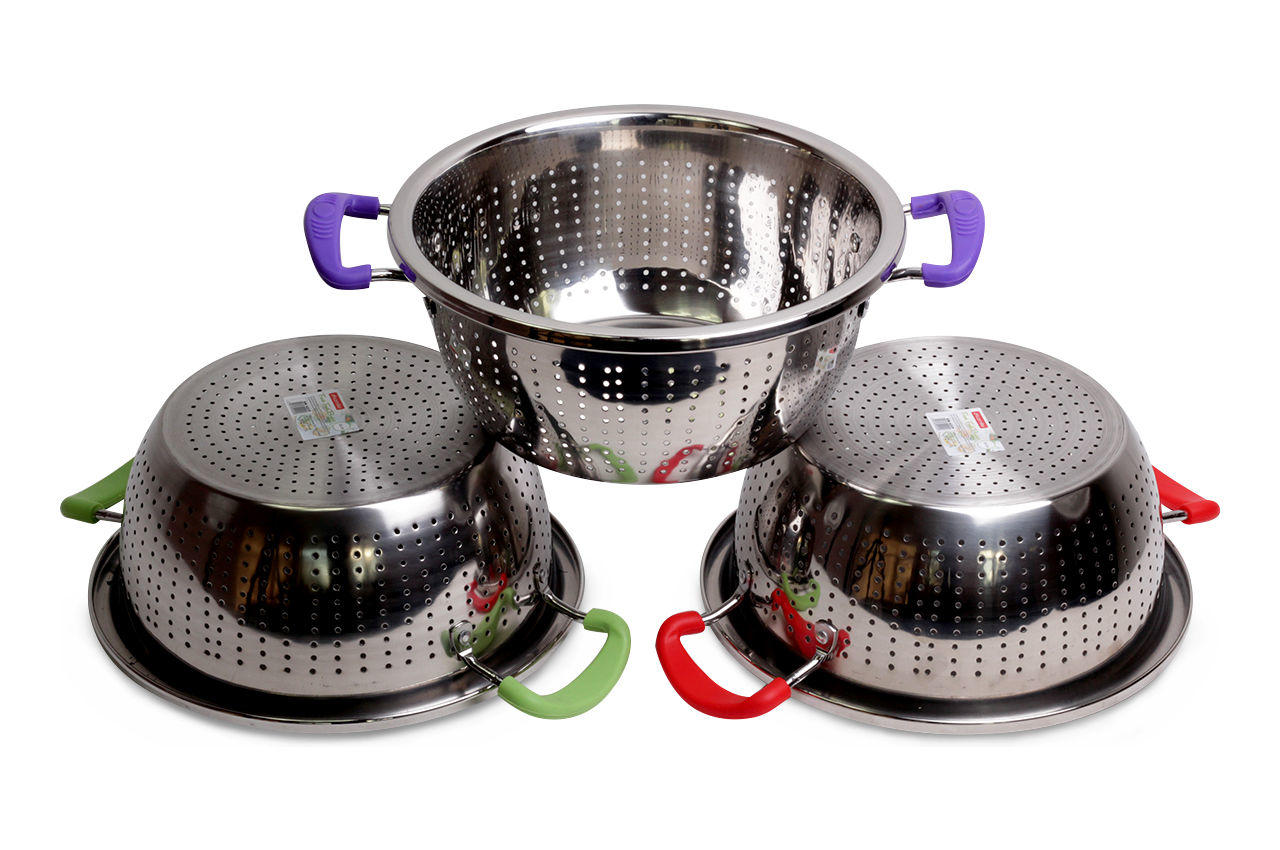 Дуршлаг нержавеющий Kamille – необходимая вещь на кухне для приготовления различных блюд, для отделения жидкости от твердых веществ, мытья и промывки ягод, грибов, мелких фруктов и овощей, а также отцеживание сырной сыворотки.