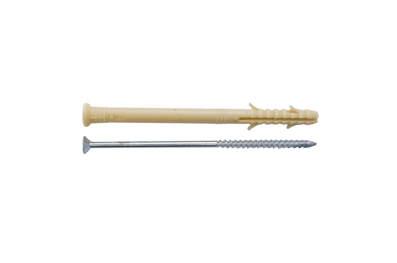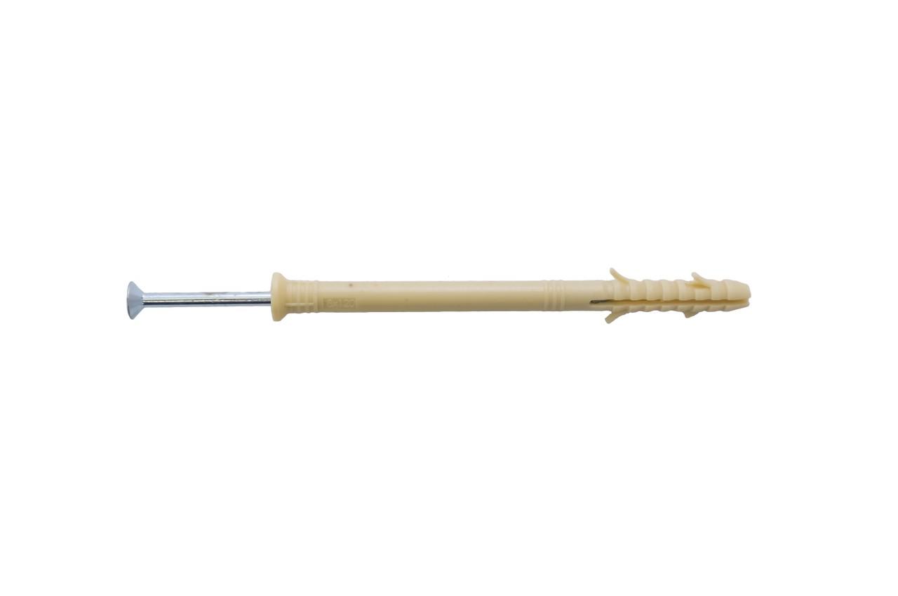 Дюбель-гвоздь Apro имеет широкую область применения. С его помощью можно собирать конструкции из профилей и уголков, а также фиксировать листовые материалы (гипсокартон, пенополистирол, ДВП, ДСП и др.). Дюбель прекрасно сочетается с бетонными, кирпичными, каменными, гипсовыми и деревянными основаниями. Этот крепеж состоит из пластикового дюбеля и забивного шурупа.