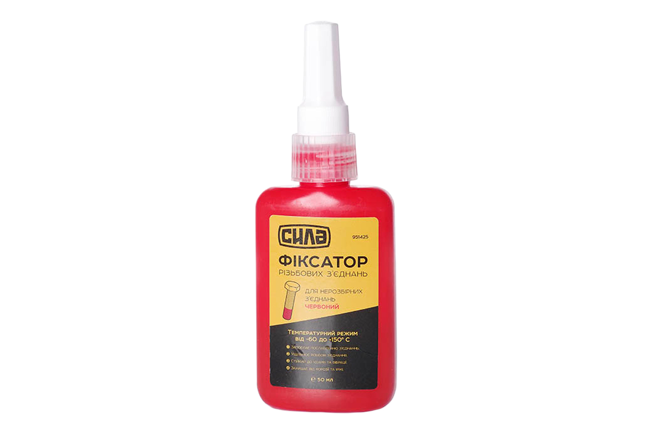 Фиксатор резьбы для неразборных соединений Сила - 50г красный. Используется для фиксации и герметизации резьбы. Защищает резьбу от ржавчины и коррозии и предотвращает ослабление резьбовых соединений от вибрации.