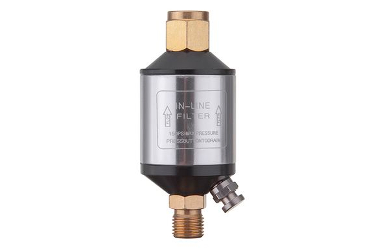 Мини-фильтр PT-1403 используется с покрасочными пистолетами. PT-1403 предназначен для фильтрации подаваемого воздуха непосредственно перед покрасочным пистолетом. Основу мини-фильтра составляет картридж из пенометалла. Благодаря картриджу из пенометалла осуществляется максимальная защита от попадания мелких частиц в сопло покрасочного пистолета. Картридж имеет уникальные свойства и является многоразовым. Чтобы сохранить первоначальные свойства картриджа и обеспечить максимальную защиту от попадания мелких частиц, рекомендуем периодически чистить съемный картридж в растворителях. Мини-фильтр имеет металлический корпус, что при падении либо других механических повреждениях сохраняет его первоначальный вид и целостность всей конструкции. Верхнее и нижнее основания мини-фильтра также выполнены из металла. Максимальное давление (верхняя граница) мини-фильтра составляет 150 PSI или 10 Атм. Уровень фильтрации: 20 мкм; Резьба внутренняя: 1/4"; Другое: клапан для слива конденсата;фильтрующий элемент из пенометалла; Материал корпуса: металл; Рабочее давление: до 10 атм; Диаметр резьбы: 1/4"