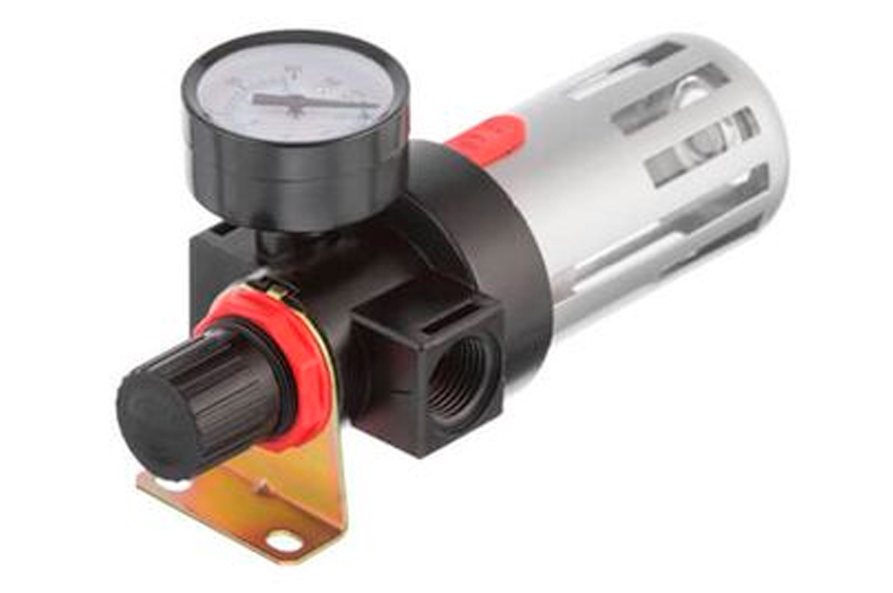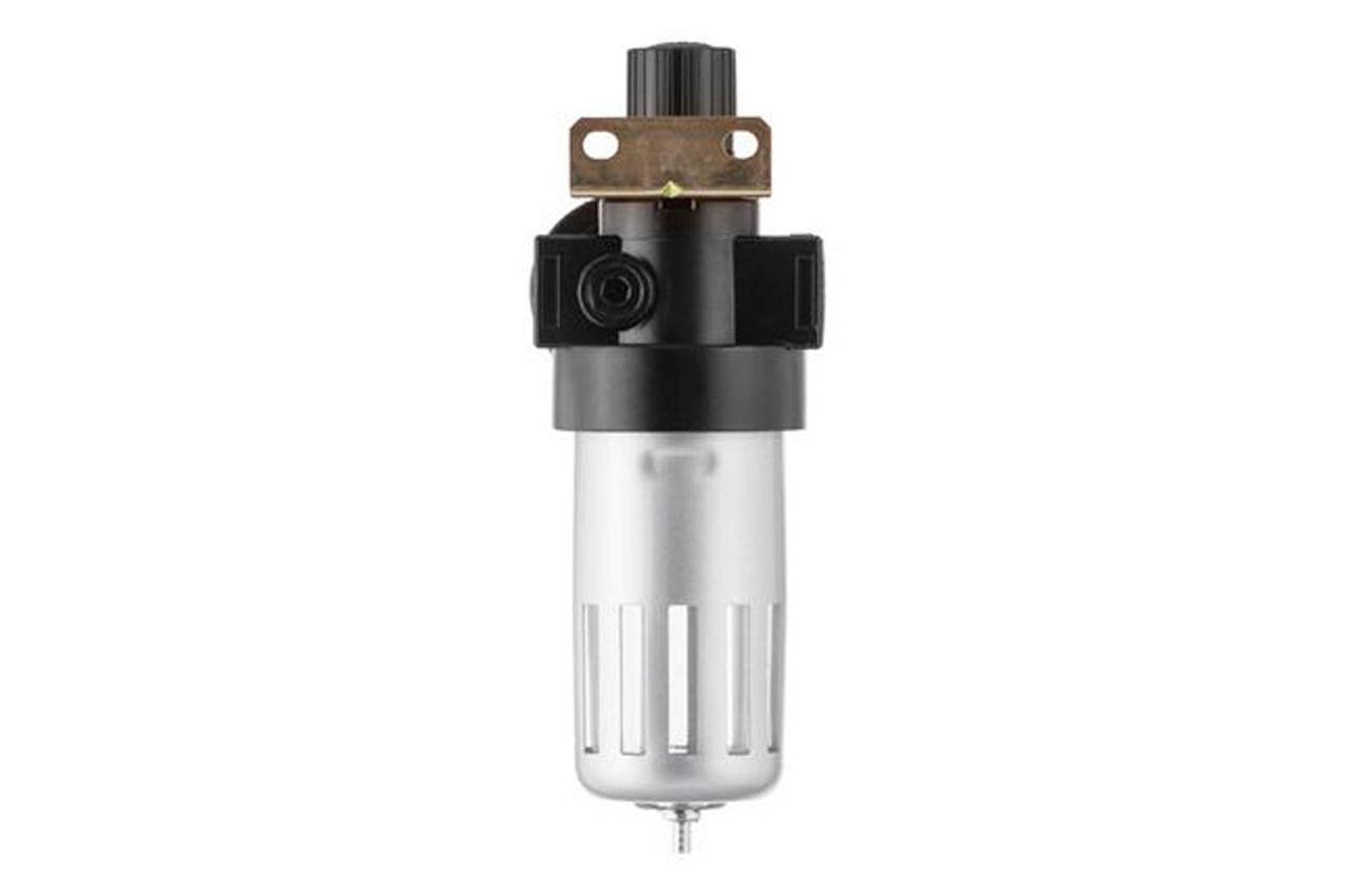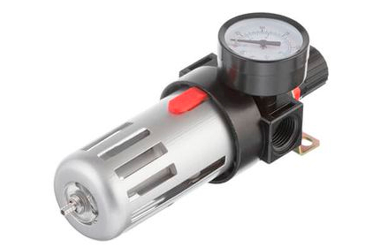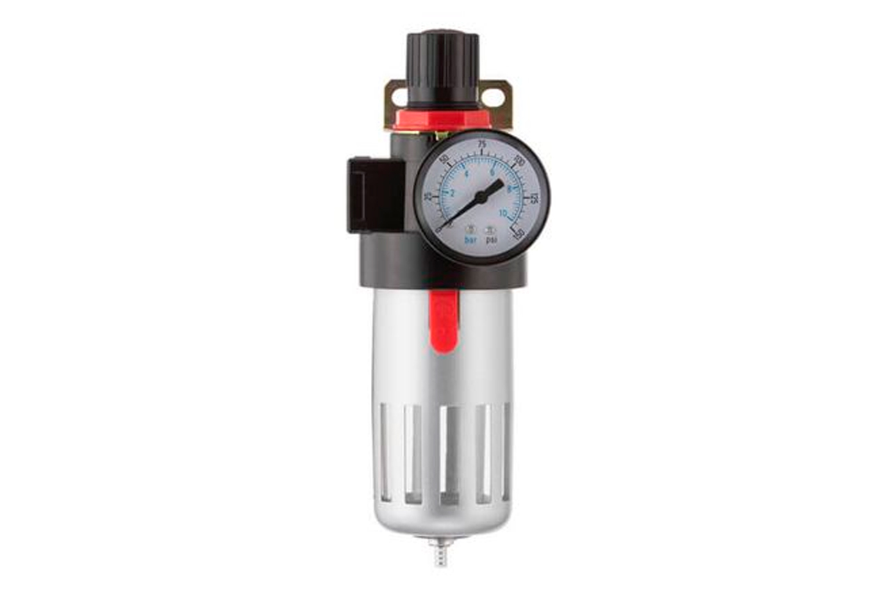 Фильтр очистки воздуха необходим для качественной покраски краскопультом или для бесперебойной работы пневмоинструмента. Очищает воздух из компрессора от влаги, масла и пыли. Улавливает мелкие частицы до 20 микрон. На корпусе фильтра установлен редуктор, Вы можете легко выставить необходимое давление в магистрали. Внизу колбы установлен клапан для сбрасывания накопившегося масла и влаги. Особенности Фильтрующий элемент изготовлен из вспененного металла; Автоматический дренаж; Регулятор давления от 0 до 12 атмосфер. Фильтр с редуктором устанавливают непосредственно после выхода из компрессора. В комплект не включены переходники. Имеет 2 внутренние резьбы для подключения, диаметром 1/2". Регулятор давления: 0-12 атм; Уровень фильтрации: до 20 микрон; Пропускная способность: до 1200 л/мин; Диаметр шланга: 8-10 мм; Диаметр резьбы: 1/2"