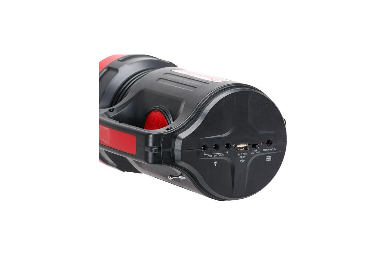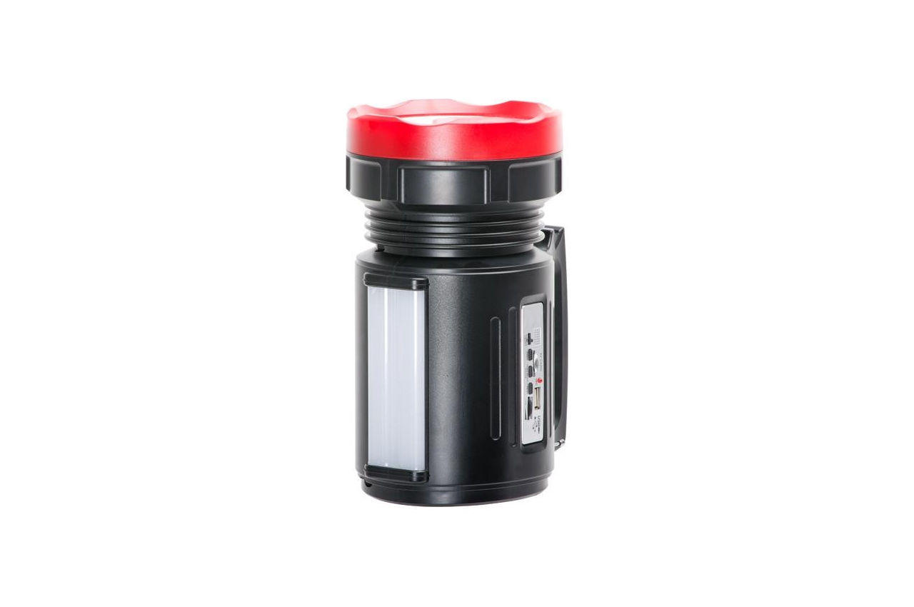 Фонарь, выносная солнечная панель, выносные 2 led лампы, кабель для зарядки телефона-планшета, зарядное устройство, ремешок Мощность: 1 LEDx5Вт + 22SMD + 3LEDx3Вт; Емкость аккумулятора: 6000 мАч; Комплектация: Фонарь USB переходник для зарядки гаджетов;3 независимые лампы на 3-х метровых удлинителях;Солнечная батарея; Зарядное устройство от сети;; Другое: FM-радио;CardReaderUSB-in под флешкуUSB-out для зарядки устройств;Разъемы для подключения выносных ламп;