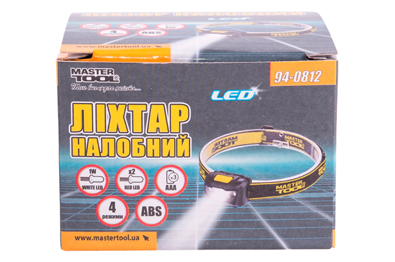 Фонарь налобный Mastertool - 2LED x 1 Вт x 4 режима
