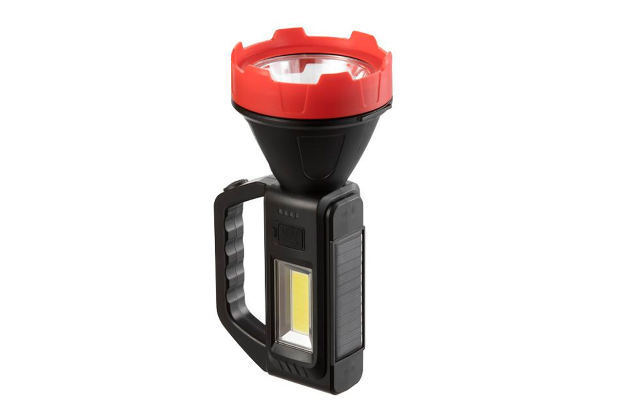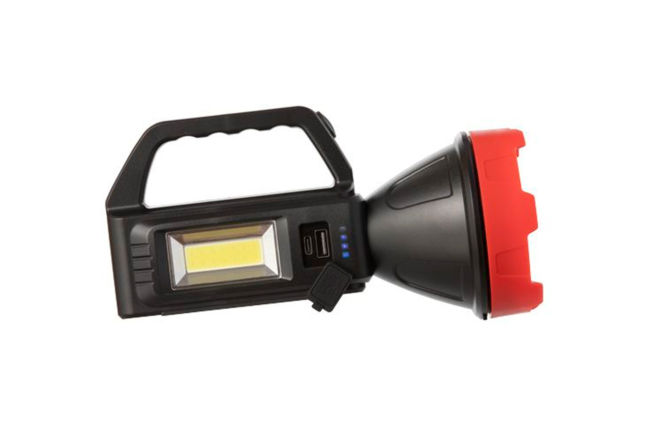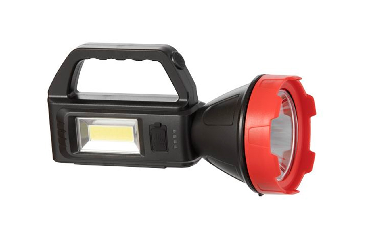 Ручной фонарь станет незаменимым помощником в различных бытовых работах, в туристических походах, на рыбалке, а также обеспечит качественное освещение рабочего пространства мастерам, электрикам и пр. Простая конструкция и качественные материалы изготовления для максимально продолжительной службы. Работает фонарь от Li-Ion аккумулятора, емкостью 800 мАч. Одного заряда хватает до 2-3 часов автономной работы. Основной прожектор 3 Вт, с яркостью свечения 210 Лм работает на 100% и 50% мощности, а также в режиме стробоскопа. Светодиодный модуль на боковой панели СОВ LED для рассеянного света, освещает больше пространства вокруг, мощностью 3 Вт.