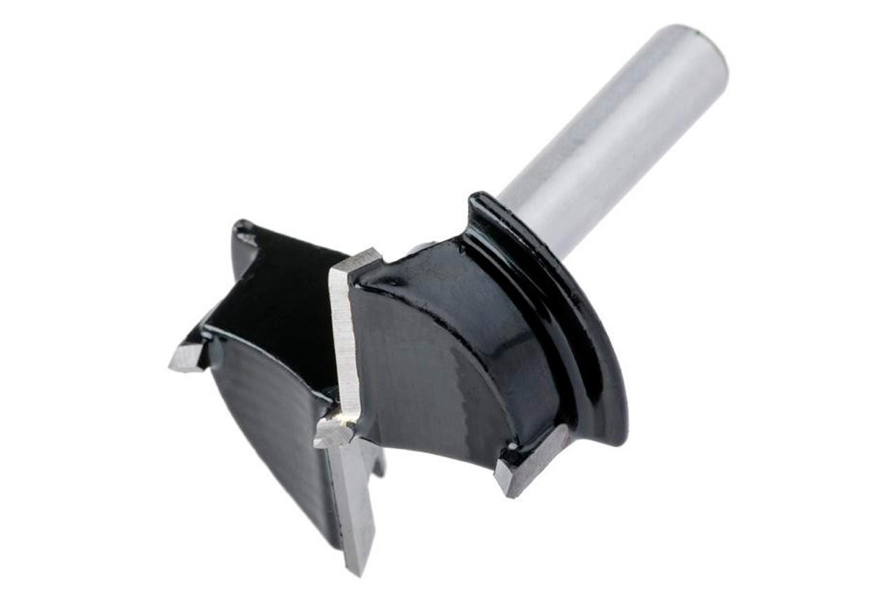 Используя фрезу Форстнера (сверло Форстнера) Вы быстро и легко сделаете отверстия чашечного типа с ровным дном и стенками. На этой фрезе установлен ограничитель на глубине 11 мм. Он защитит Вас от сквозных отверстий при работе сдеревянными листами небольшой толщины и сделает работу более комфортной. Такая функция отлично подойдет для подготовки отверстий под мебельную фурнитуру, такую как дверные петли. Обратите внимание что при работе с ДСП нужно рассчитывать силу т.к ограничитель может надломить край. Диаметр троса: 35 мм; Угол заточки: 45 °С; Диаметр хвостовика: 8 мм