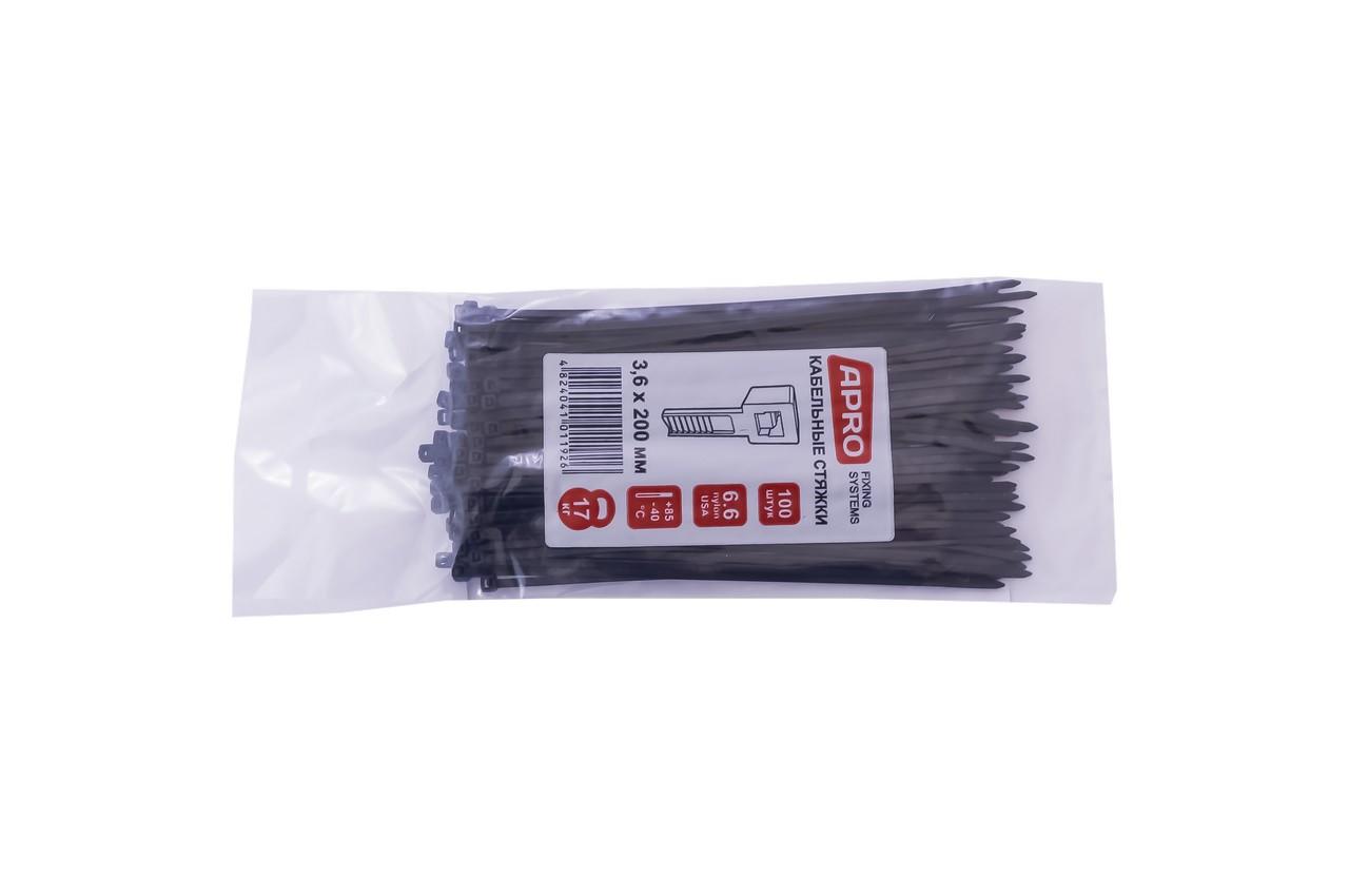 Хомут пластиковый Apro - 3,6 x 200 мм черный (100 шт.)