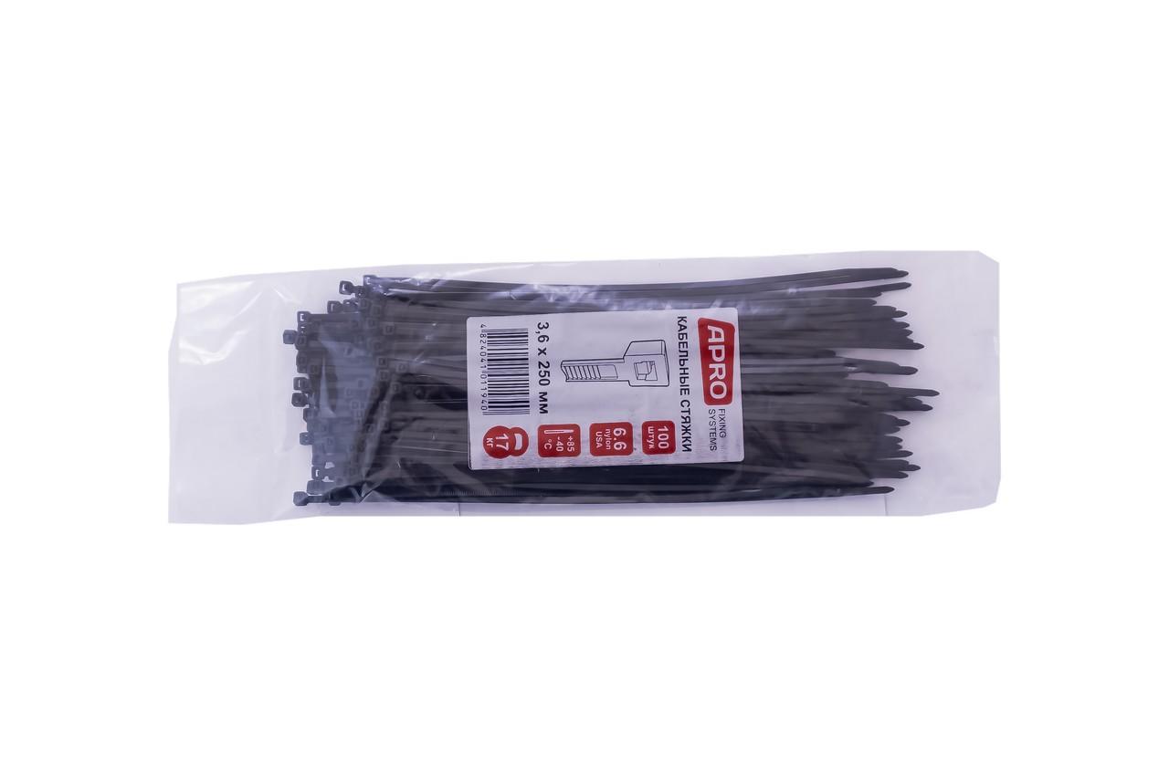 Хомут пластиковый Apro - 3,6 x 250 мм черный (100 шт.)