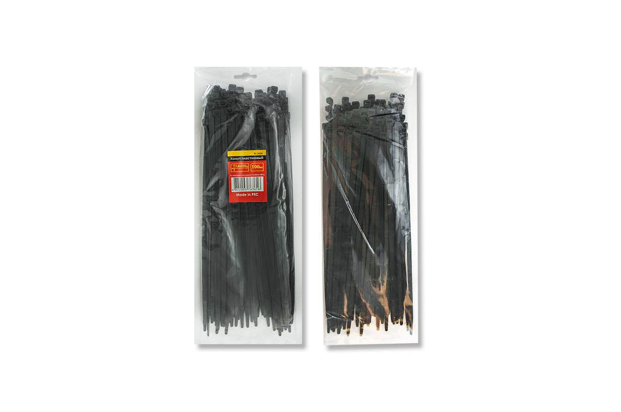Хомут пластиковый (стяжка нейлоновая) - ленточный хомут, предназначен для объединения проводов и кабелей в жгуты (бондаж), а также крепления к несущим элементам и направляющим при прокладке кабельных трасс. Цвет: черный; Количество в упаковке: 100 ед.