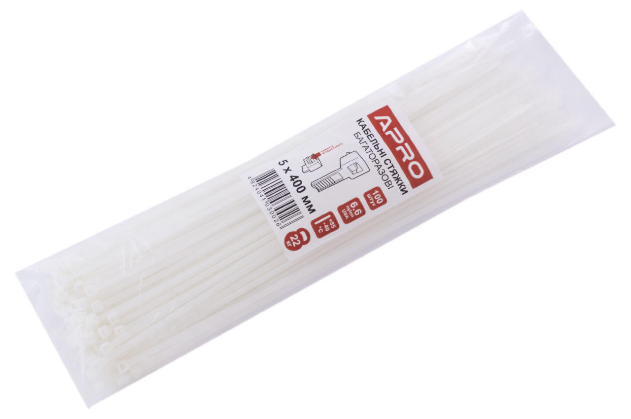 Хомут пластиковый многоразовый Apro - 5 x 400 мм белый (100 шт.)