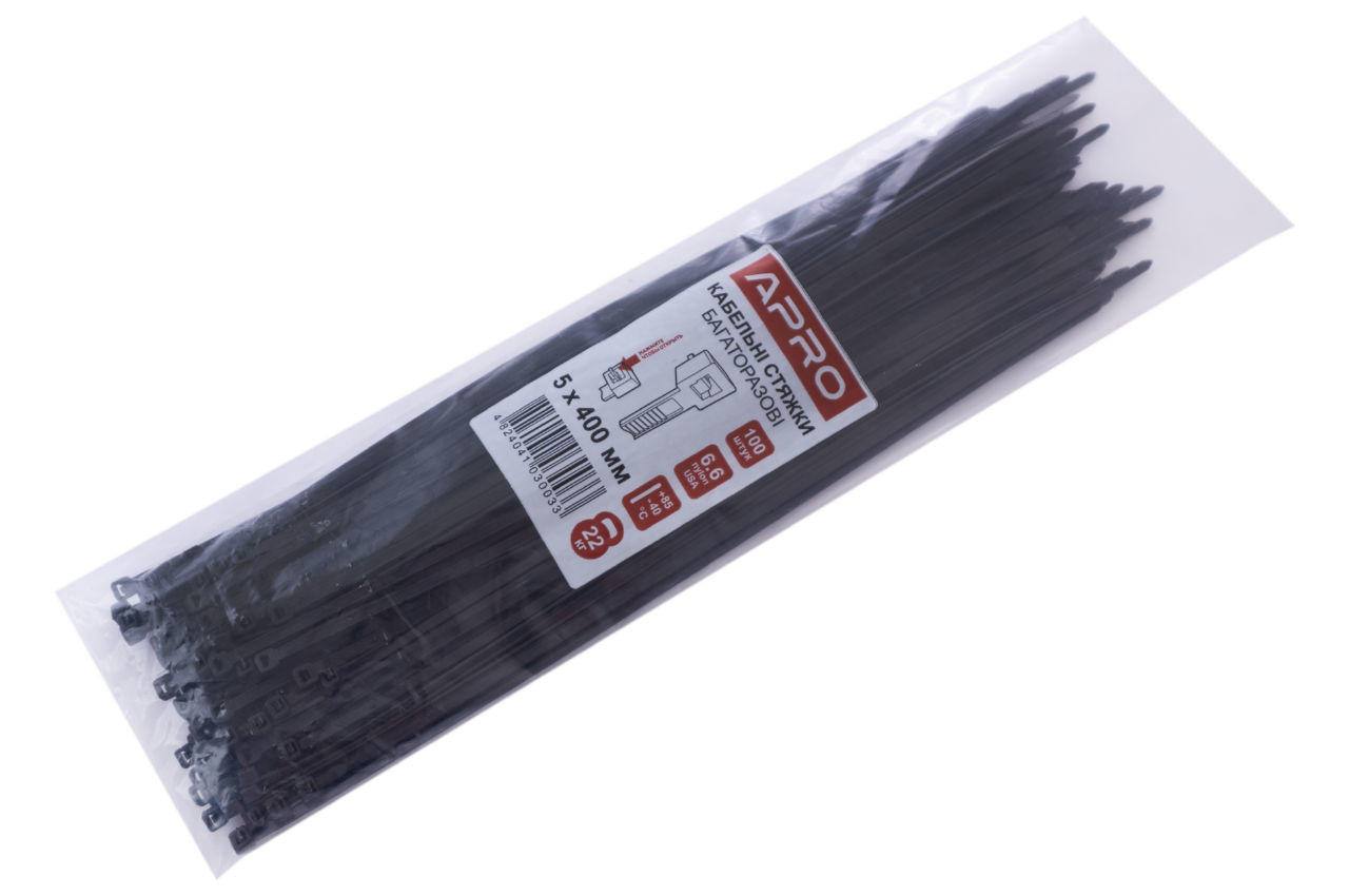 Хомут пластиковый многоразовый Apro - 5 x 400 мм черный (100 шт.)