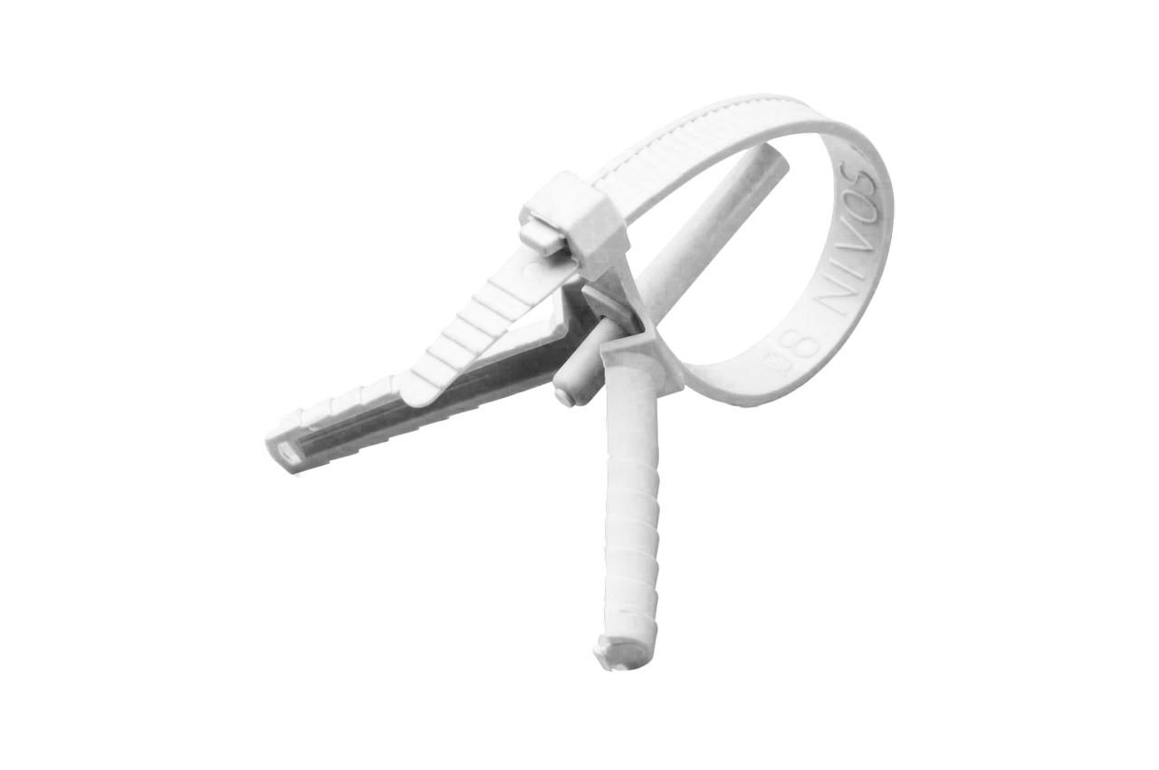 Хомут с дюбелем Apro используется для крепления кабеля небольшого диаметра. Преимущества данного продукта -это наличие забивного дюбеля. Перед монтажом необходимо сделать отверстие и закрепить в нем дюбель.