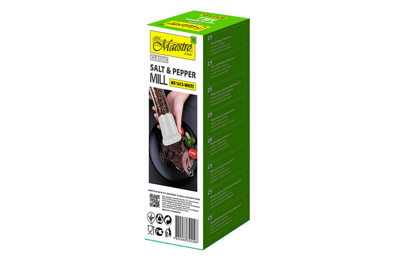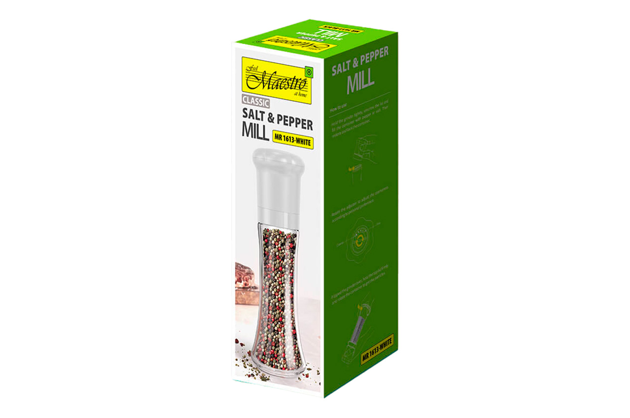 Измельчитель для перца и соли Maestro - это современный и удобный измельчитель, который станет незаменимым помощником на вашей кухне. Благодаря стильному дизайну, крепким материалам и возможности регулировки степени помола, он поможет приготовить блюда с идеальным балансом специй.