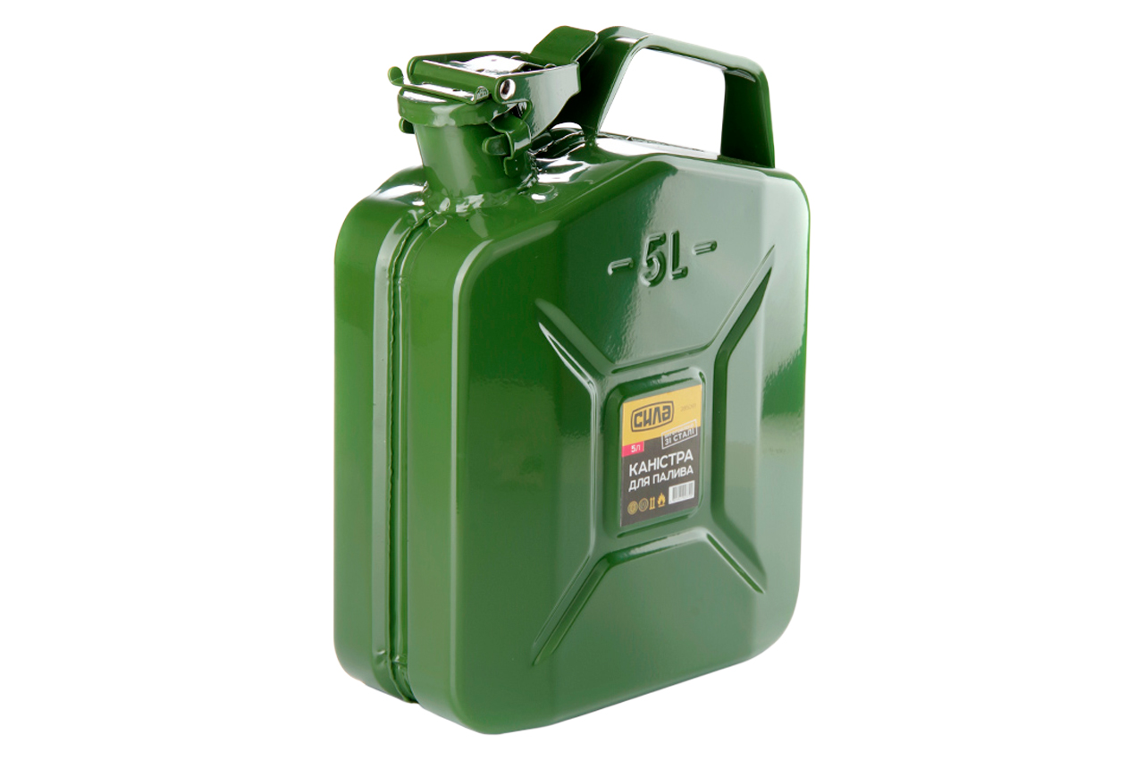 Металлическая канистра предназначена для хранения топлива, ГСМ. Бренд - Сила. Объем, л - 5. Материал - металл. Тип рукоятки: Одинарная; Толщина металла: 0,8 мм