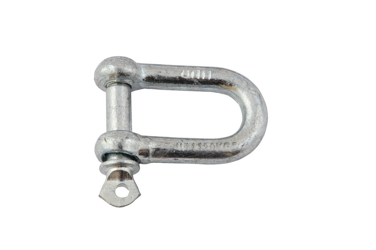 Карабин-шекля (крановая серьга, скоба такелажная) представляет собой петлю металлическую, концы которой соединены между собой поперечным штифтом (палцем). Используется в качестве вспомогательного элемента, съемной связки в подъемных и статичных конструкциях. Шекля является универсальным элементом для всех видов тросов, цепей.