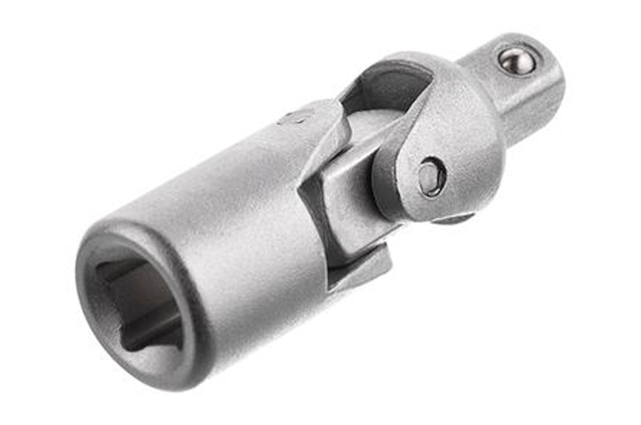 Карданный механизм под квадрат 1/4". Хром-ванадиевая сталь. Для фиксации в другом инструменте, квадрат переходника имеет подпружиненный металлический шарик.