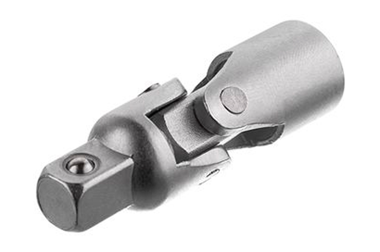 Карданный механизм под квадрат 3/8". Хром-ванадиевая сталь. Для фиксации в другом инструменте, квадрат переходника имеет подпружиненный металлический шарик.