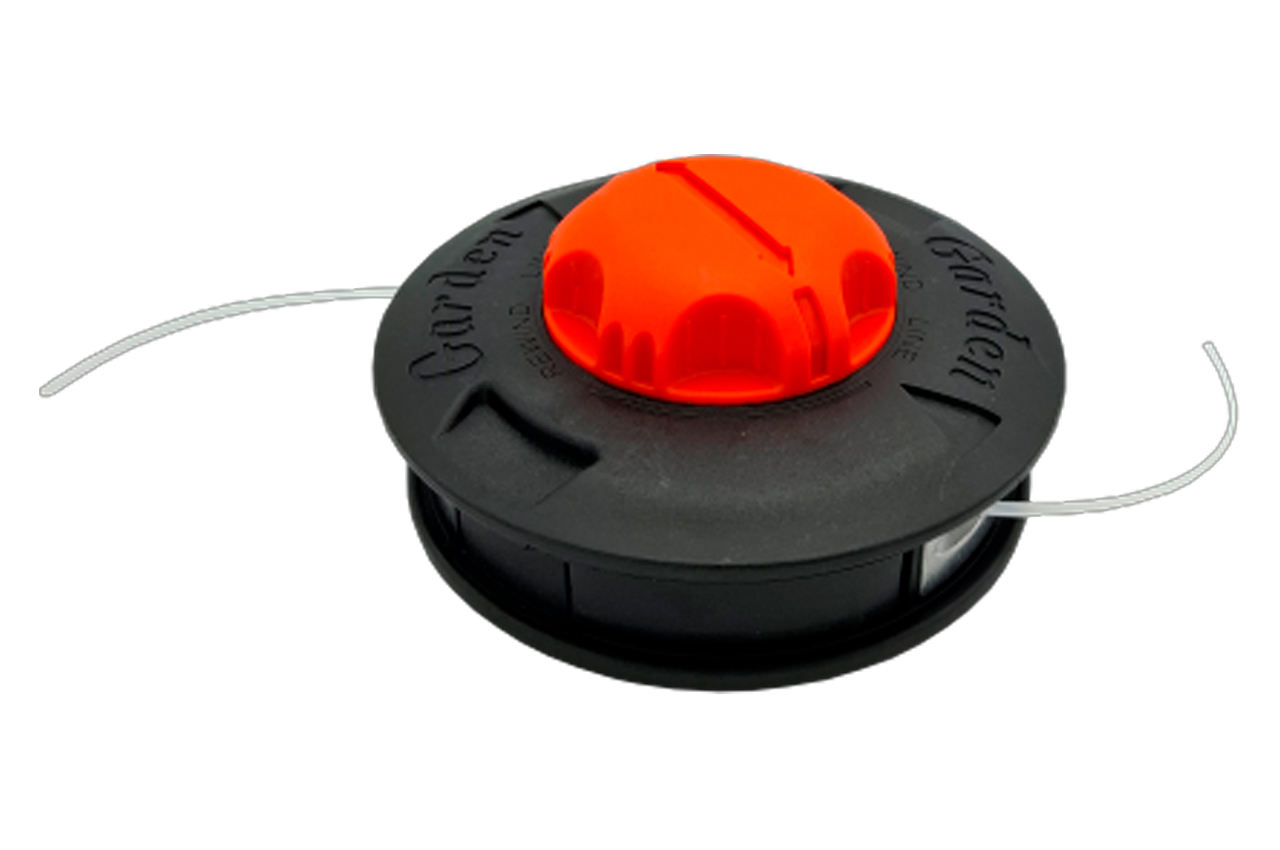 Катушка для триммера автоматическая. Для обновления лески ее не надо разбирать. Достаточно отрезать кусок нужной длины, продеть его через катушку, предварительно совместив отверстие для лески со стрелкой на триммерной головке. Далее совмещают два конца, чтобы выровнять их по длине, а затем наматывают леску, прокручивая головку. Плотность намотки равномерная, за этим следит несложный механизм.