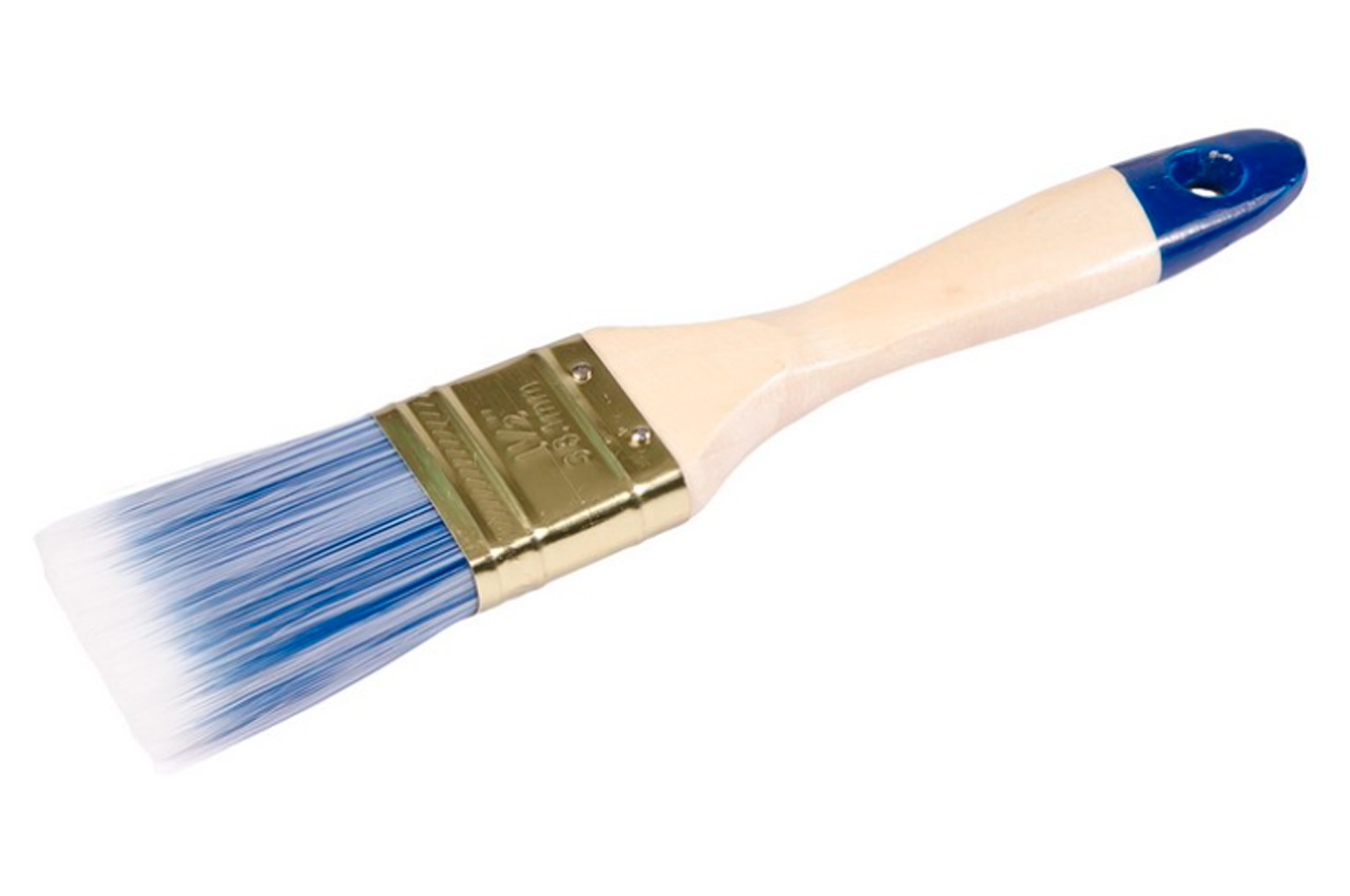 Предназначена для акриловых красок. Имеет деревянную крашенную рукоятку, к которой при помощи металического бандажа крепится смесь щетины и полиэстера.