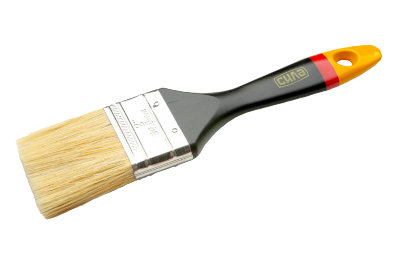 Щетина — смешанная (микс) натуральная + искусственная. Такая щетина подходит для использования с любыми красками и лаками, но при длительном использовании с ЛКМ на агрессивной основе (например, на пару дней оставили кисть в банке с растворителем) кисть теряет свои свойства (выпадает щетина). Смешанная щетина достаточно мягкая и тонкая, поэтому можно добиться идеально тонкого и ровного слоя краски. Крепление щетины - «юбка» изготовлена из качественного нержавеющего метала, закреплена к рукоятке в 4-х местах специальными гвоздями. Рукоятка — изготовлена из пластика, имеет 3-х цветную окраску (черный, желтый, красный) есть отверстие для подвешивания. Длина щетины: 51 мм; Материал рукоятки: деревянная; Материал щетины: натуральный, искусственный; Толщина щетины: 12 мм