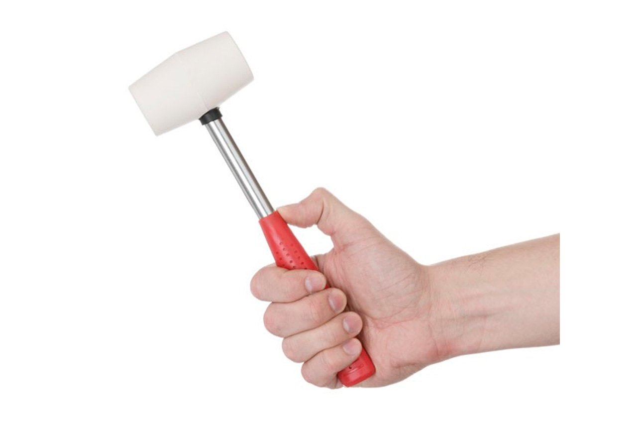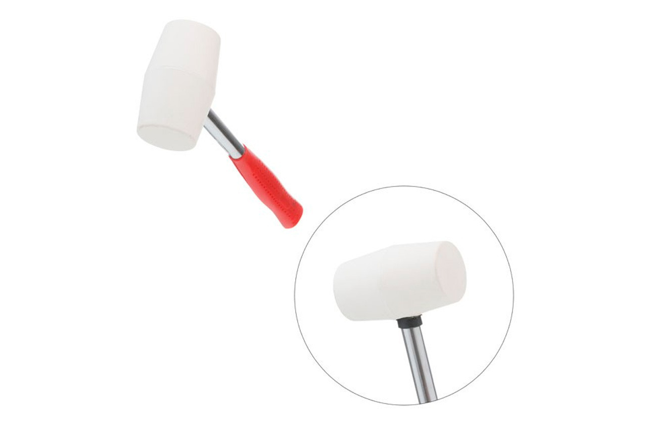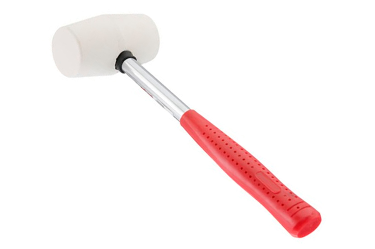 Резиновая киянка с металлической рукояткой. Боек изготовлен из белой резины, которая обладает большей эластичностью, нежели черная.