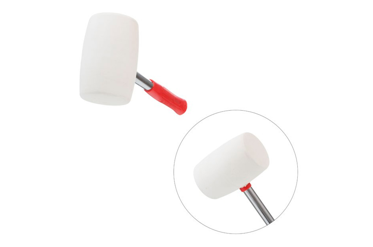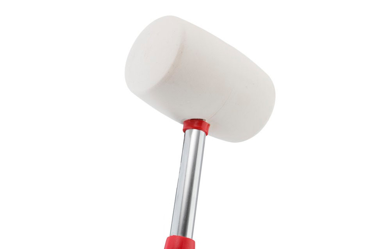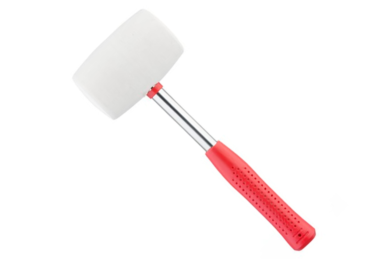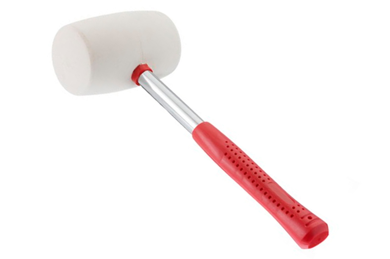 Резиновая киянка с металлической рукояткой. Боек изготовлен из белой резины, которая обладает большей эластичностью, нежели черная.