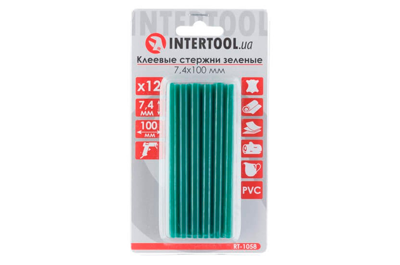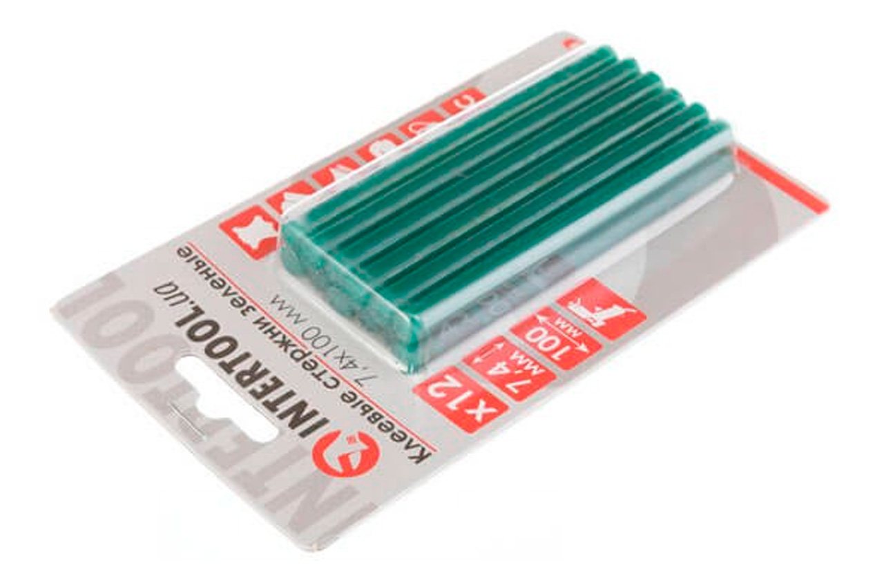 Клеевые стержни Intertool - 7,4 x 100 мм зеленые (12 шт.)