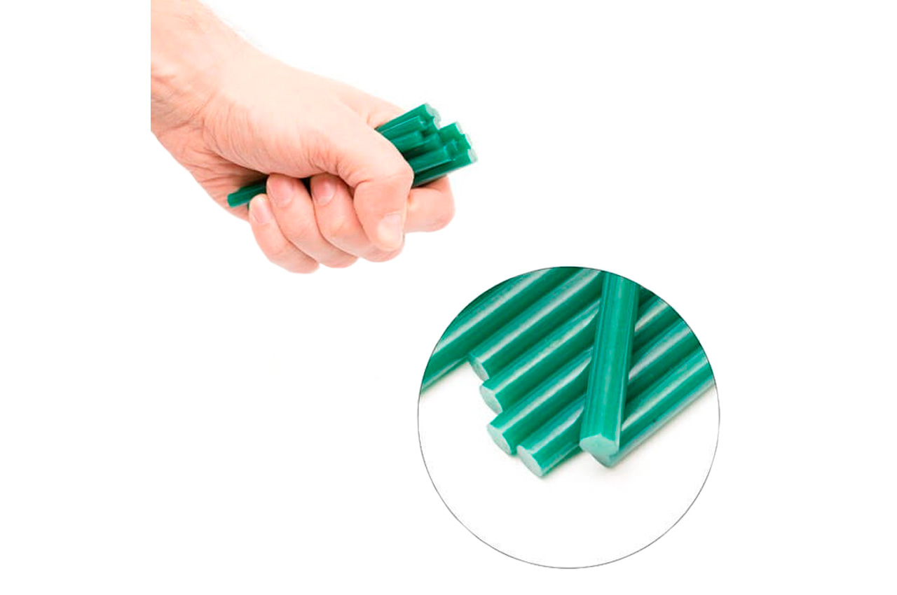 Термоклеевые стержни RT-1058 подходят для большинства клеевых пистолетов. Диаметр стержня 7,4 мм, длина 100 мм – одни из самых распространенных и популярных размеров. Отлично подходят для творческих поделок, декоративных работ и для разноплановых бытовых потребностей. Эти универсальные силиконовые стержни склеивают бумагу, картон, ткань, пластик, керамику, кожу и пр. Клеевые стержни зеленого цвета, изготовлены из пластичного термоплавкого клея этиленвинилацетата, безопасного для здоровья. В комплекте 12 стержней. Особенности Удобные – достаточно зарядить стержни в клеевой пистолет, и поверхности будут склеены всего одним нажатием на курок. Экологичные – термоклей состоит из сополимера ЭВА, который нетоксичен, не выделяет запаха и не содержит растворителей. Гарантируют высокопрочное склеивание; Устойчивы к влаге. Температура размягчения: 85 град; Время застывания: 30-40 сек; Температура текучести: 160-170 град; Длина стержня: 100 мм; Диаметр стержня: 7,4 мм; Цвет: зеленый; Количество в упаковке: 12 шт