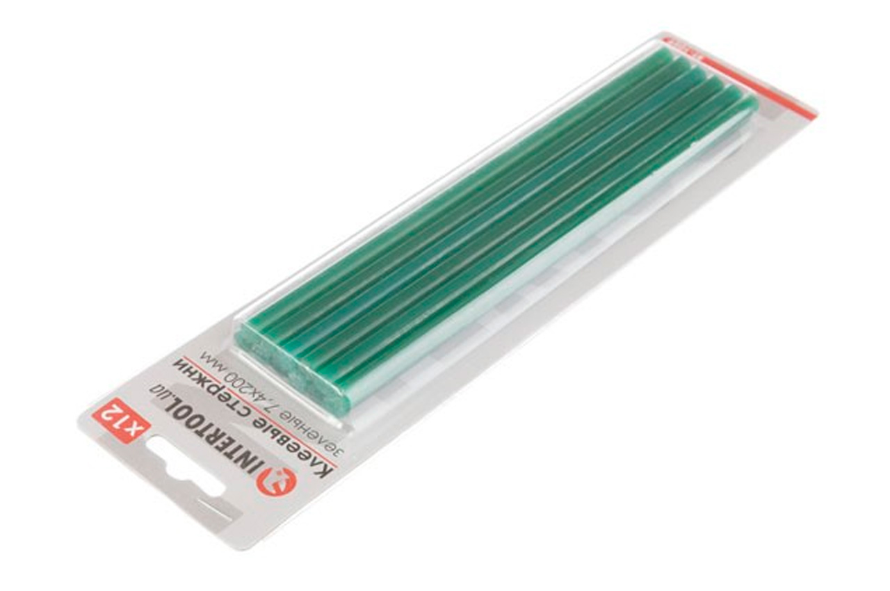 Клеевые стержни Intertool - 7,4 x 200 мм зеленые (12 шт.)